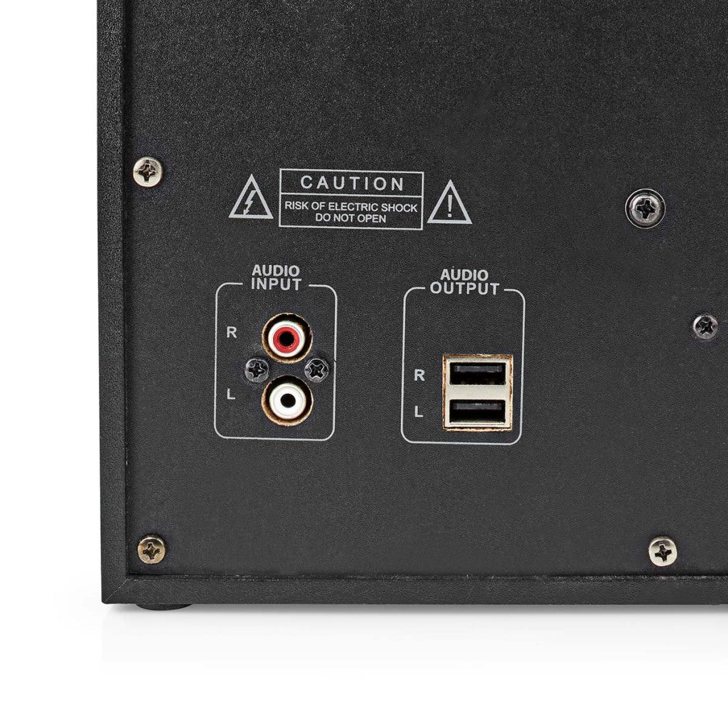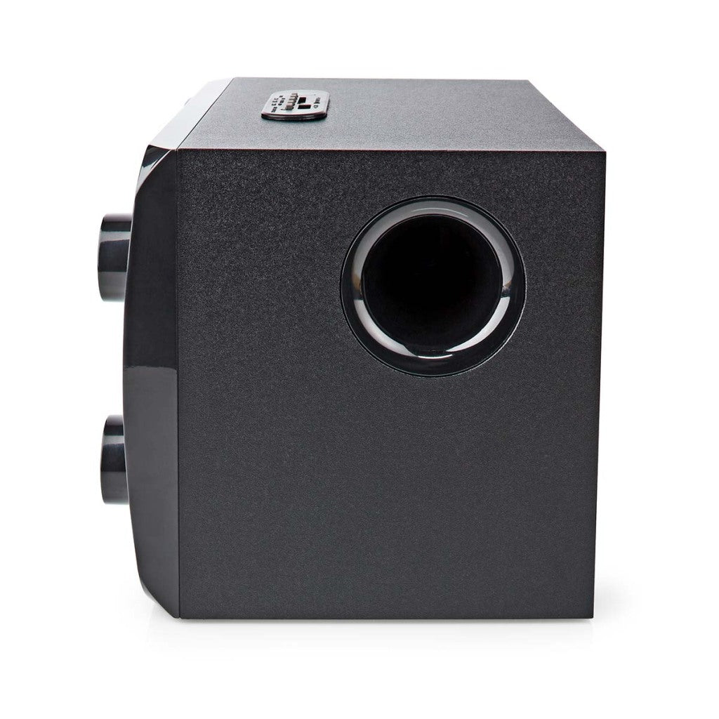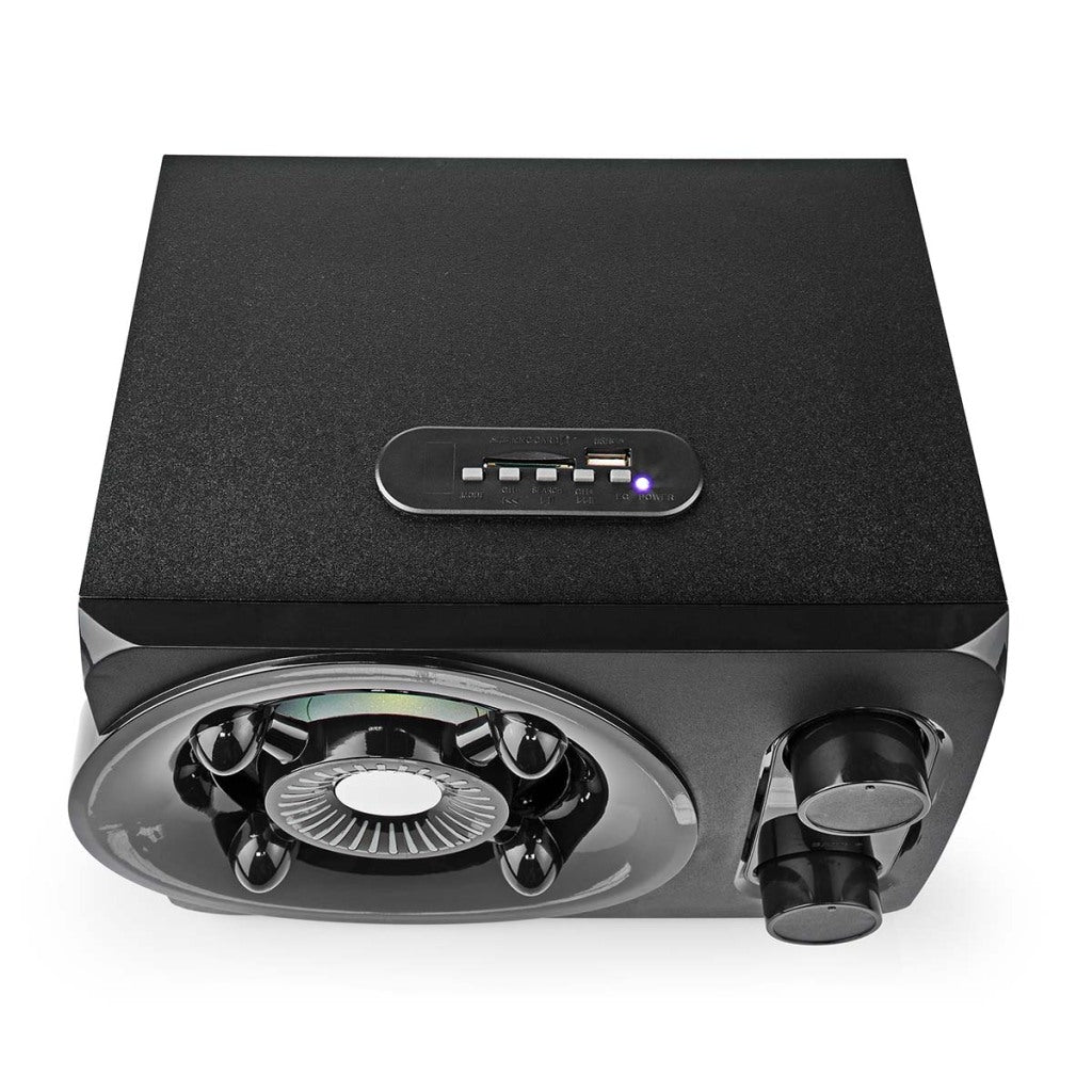 This Nedis gaming 2.1 HiFi speaker system adds another dimension to any gaming experience. The wooden cabinet 5? subwoofer creates a great bass sound, and is powered by 75 Watt (peak) where the 3? satellite speakers deliver perfect tones in the mid / higher frequency range. The illuminating LEDs that light up and add an extra dimension to every gaming experience. The speaker set connects by using the included 3.5mm jack cable.