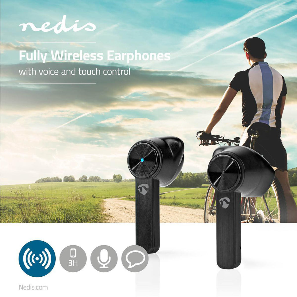 Enjoy streaming music and phone calls with these Nedis® fully wireless Bluetooth® 5.0 headphones with voice control. They comes with a charging case for easy charging it without wires. These fully wireless headphones have a playtime of up to 3 hours and the charging case provides 4 additional full charges. The small-sized drivers with a 10 mm diameter deliver excellent sound quality. Their ergonomic design enable you to easily take them out if needed and make you stand out. They are compatible with Google Assistant and Siri so you can ask to start your music, ask for road directions, online information and many other things. This makes these headphones match perfectly with your smart life. The touch-control buttons provide the ultimate user experience.