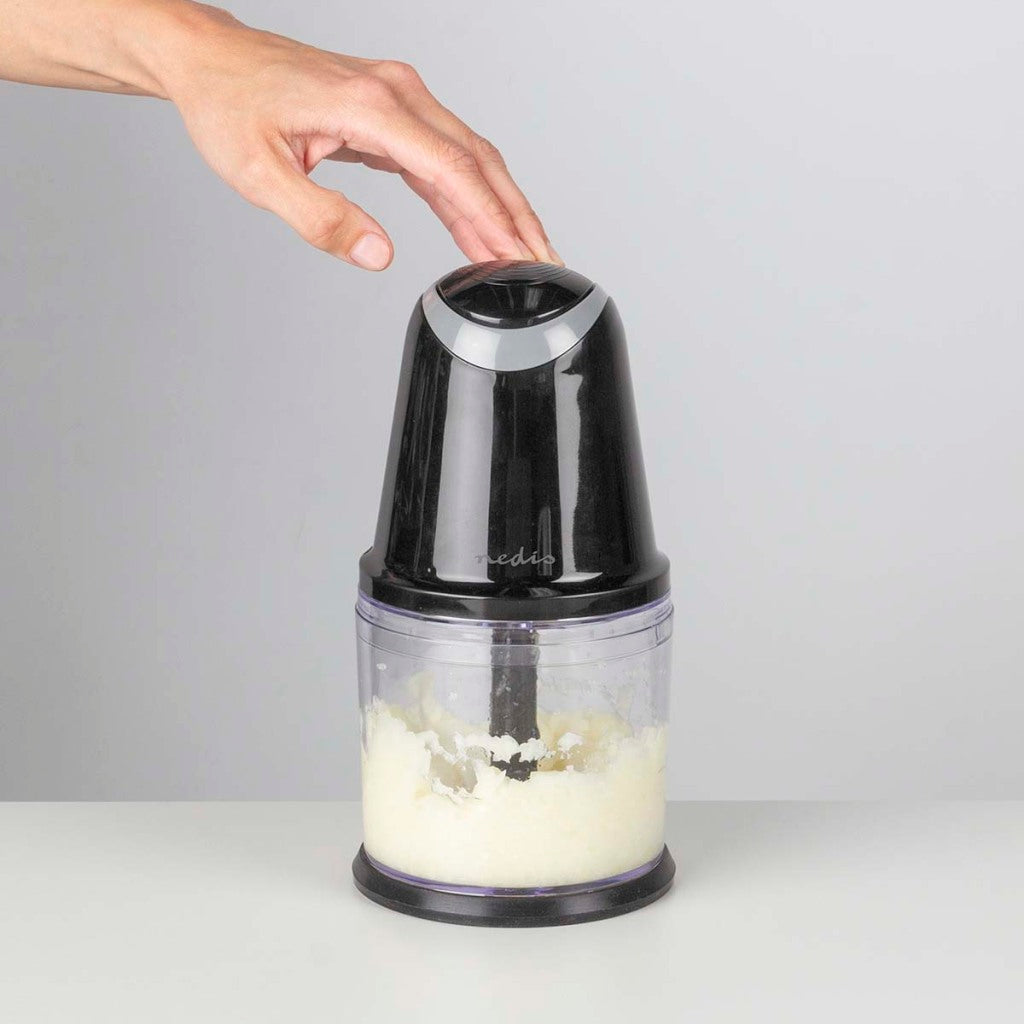 Deze minihakmolen is het ideale apparaat in de keuken wanneer je ingrediënten moet hakken en snijden. De minihakmolen neemt je werk eenvoudig uit handen, of je nu maaltijden met noten, fruit of groenten kookt. De minihakmolen met een vermogen van 260 watt met roestvrijstalen messen heeft een directe bedieningsknop aan de bovenkant voor een gemakkelijke bediening. De kunststof kom met deksel heeft een capaciteit van 500 ml. Na het hakken is het schoonmaken een fluitje van een cent, omdat alle verwijderbare onderdelen vaatwasmachinebestendig zijn.