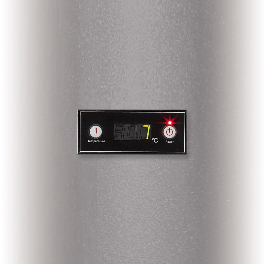 Aan de bovenkant is een gedeelde glazen deksel bevestigd voor gemakkelijke toegang, zodat je goed zicht hebt op de ijskoude inhoud, en met de instelbare thermostaat met leddisplay kun je een optimale temperatuur tussen 0 °C en 16 °C instellen.
