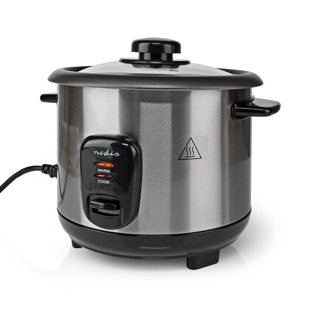 Met dezeNedis KARC110AL rijstkoker met roestvrijstalen behuizing van Nedis kun je in een mum van tijd de lekkerste rijst koken. Je hoeft je geen zorgen meer te maken over het te lang koken van de rijst, omdat de rijstkoer automatisch overschakelt op de warmhoudfunctie zodra de rijst is gekookt. De rijstkoker heeft een capaciteit van 1 liter en een vermogen van 400 watt, waarmee je maximaal 5 porties rijst tegelijk kunt bereiden. Dit maakt de rijstkoker uitermate geschikt voor het bereiden van een diner voor het hele gezin. Natuurlijk kun je ook kleinere hoeveelheden rijst koken. De rijstkoker heeft een glazen deksel en een binnenpan met een antiaanbaklaag, zodat de rijst niet aan de pan blijft plakken. De binnenpan is uitneembaar, waardoor hij gemakkelijk kan worden schoongemaakt. De rijskoker wordt geleverd met een lepel en een maatbeker.