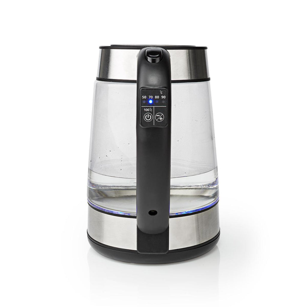 Aan het blauwe LED-licht zie je dat de ketel aan staat en door de glazen wand zie je wanneer het water kookt.