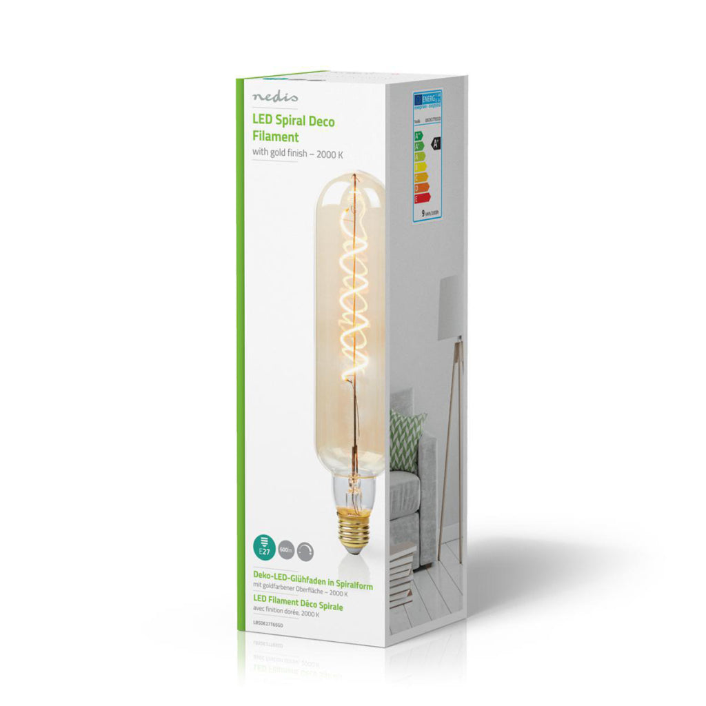 De lamp heeft een zeer brede stralingshoek van 330° en een vol, warm wit licht (2000 K). De spiraalvorm en het goudkleurige gerookte glas versterken het karakteristieke design en zorgen voor een prachtige lichtverdeling.