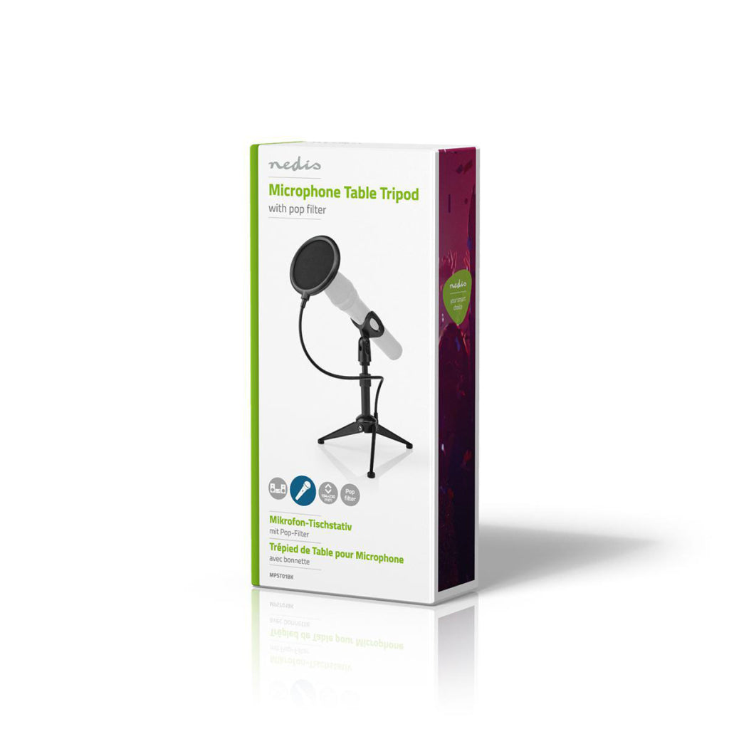 Met dit Nedis® microfoon-tafelstatief kunt u uw microfoon stabiel monteren en positioneren met de rubberen voet. Het heeft een verstelbaar hoogtebereik van 194 tot 230 mm. De microfoonhouder kan indien nodig tot 180 graden worden versteld om deze te plaatsen.