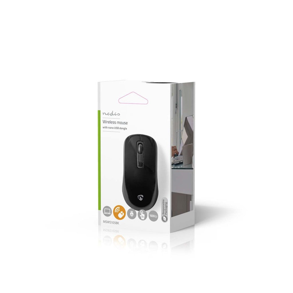Deze draadloze optische muis met 4 knoppen van Nedis is een uitstekende keuze voor iedereen die wil genieten van een volledig draadloze ervaring tot een bereik van 10 meter. De muis kan draadloos worden verbonden met je PC of laptop en wordt geleverd met een USB nano-dongle die in de muis kan worden opgeslagen. De muis heeft een zeer nauwkeurige optische sensor met een resolutie tot 1600 dpi.