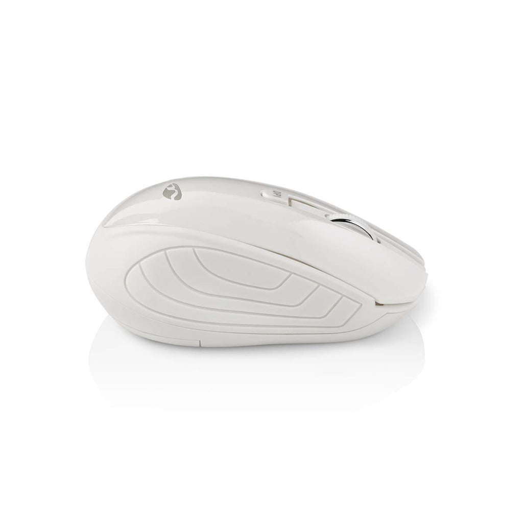Draadloze muis met rubbercoating zijkanten en een ergonomische vormgeving om het bedieningsgemak van een PC of notebook te vergroten voor zowel links- als rechtshandige personen. Hij werkt door middel van een compacte ontvanger die na gebruik onderin kan worden opgeborgen.