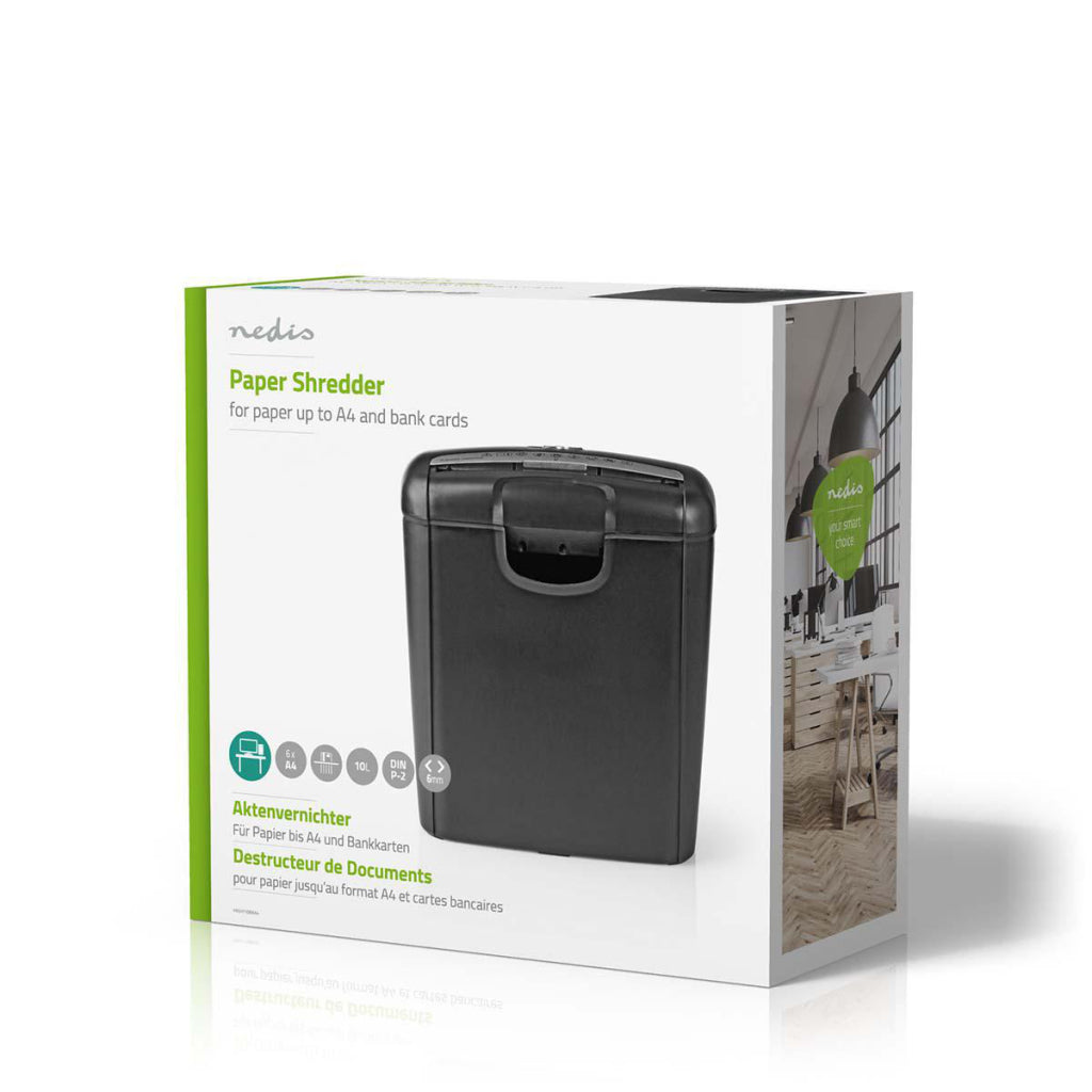 - Documenten en kaarten worden versnipperd tot een DIN-P2-veiligheidsniveau dat ervoor zorgt dat ze worden versnipperd tot moeilijk te lezen stroken van 6 mm
