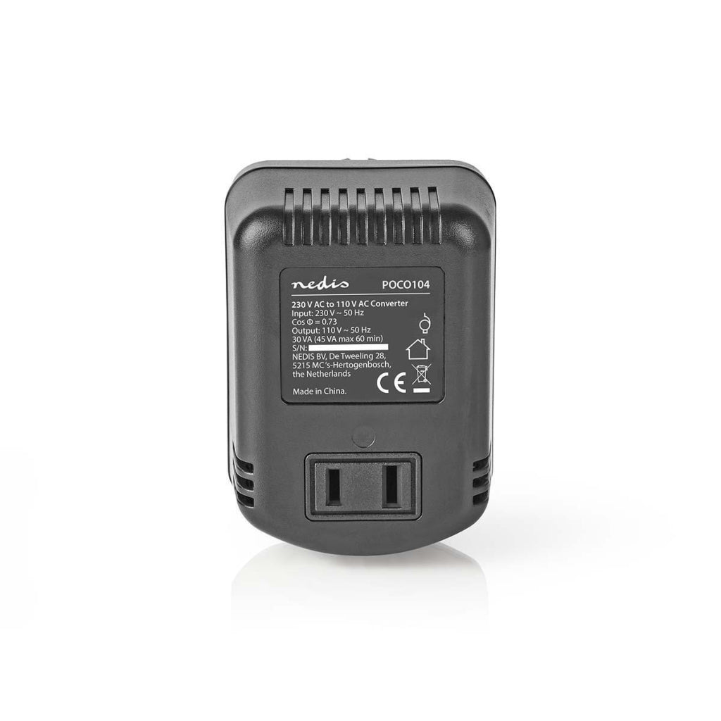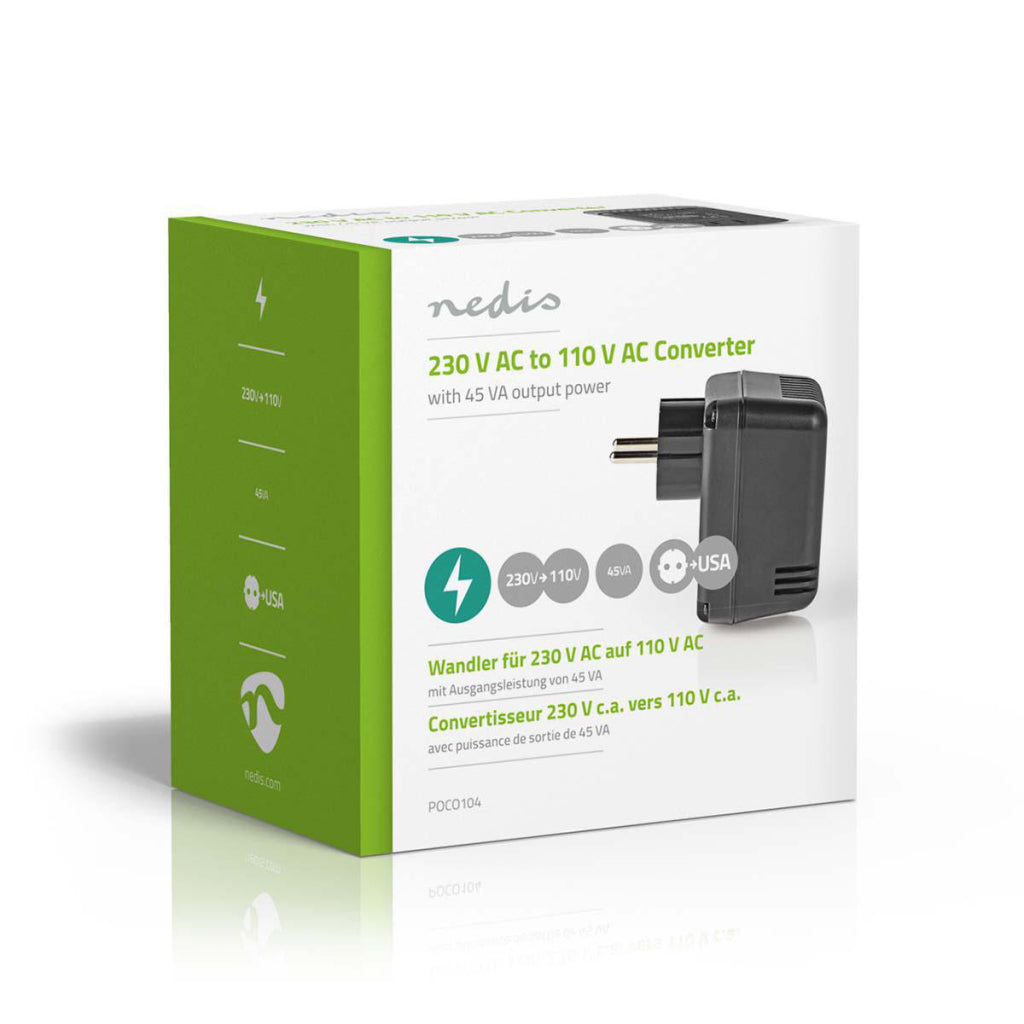 Voorzie 110VAC-apparatuur van stroom via een 230VAC-lichtnet met deze compacte spanningsomvormer. Hiermee kun je Amerikaanse apparaten in Europa gebruiken. Perfect als je voor langere tijd in Europa verblijft, maar niet wilt investeren in nieuwe apparatuur.