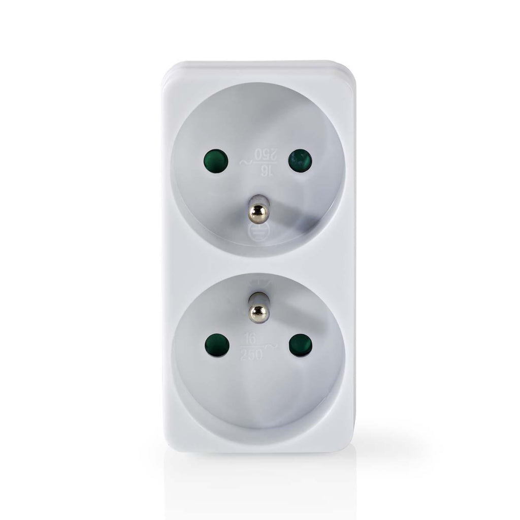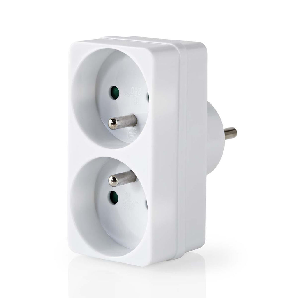 Adapter om een wandcontactdoos op te splitsen in twee stopcontacten.
