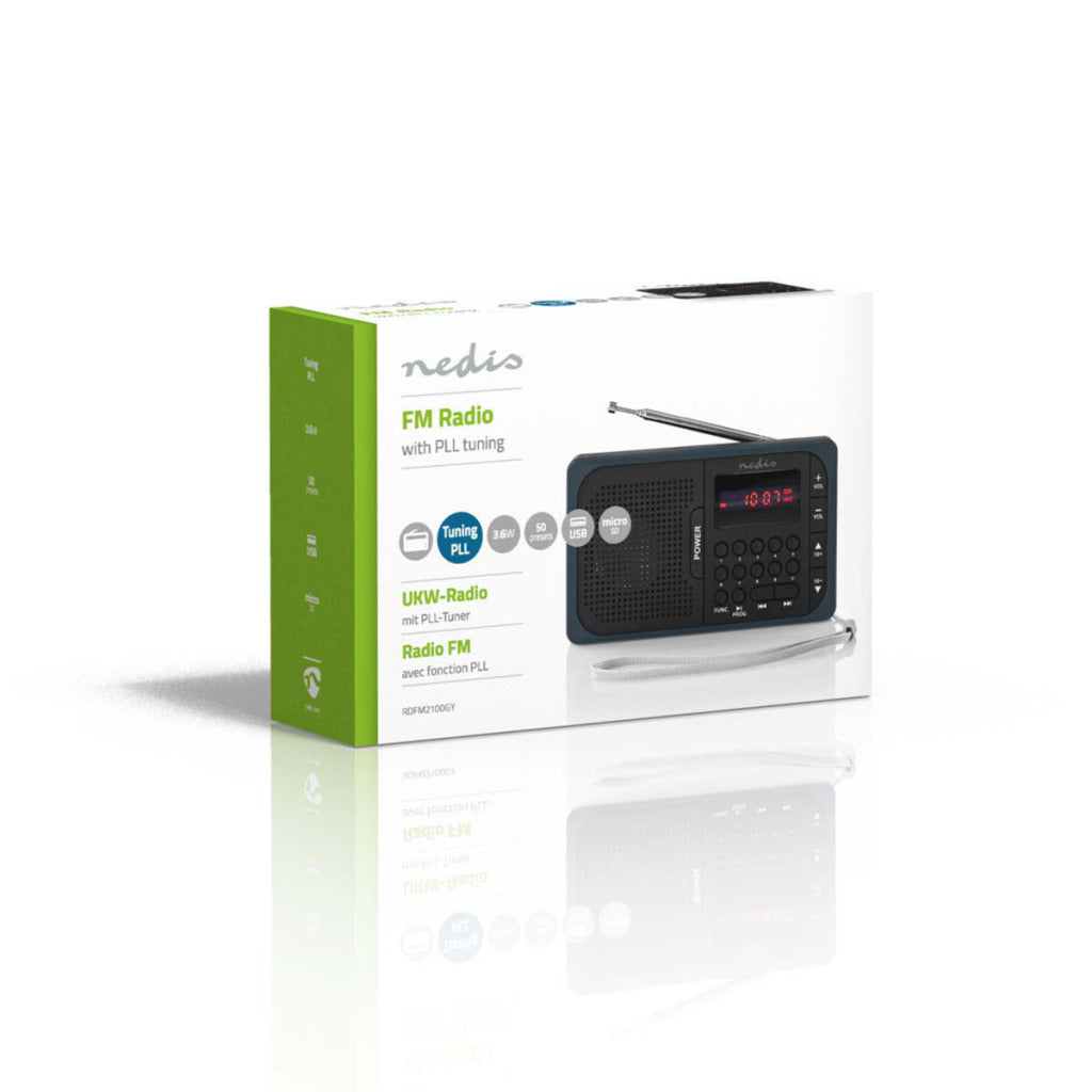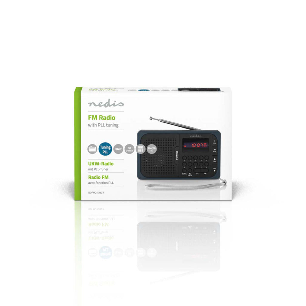 Dankzij de microSD-kaartsleuf en de USB-poort kunt u kiezen of u wilt meezingen met de afspeellijst van uw radio, of met een eigen afspeellijst. Deze kleine, draagbare radio heeft met een piekstroom van 3,6 W een verrassend vol en robuust geluid.