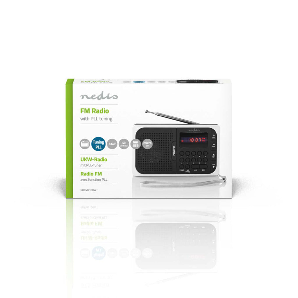 Dankzij de microSD-kaartsleuf en de USB-poort kunt u kiezen of u wilt meezingen met de afspeellijst van uw radio, of met een eigen afspeellijst. Deze kleine, draagbare radio heeft met een piekstroom van 3,6 W een verrassend vol en robuust geluid.