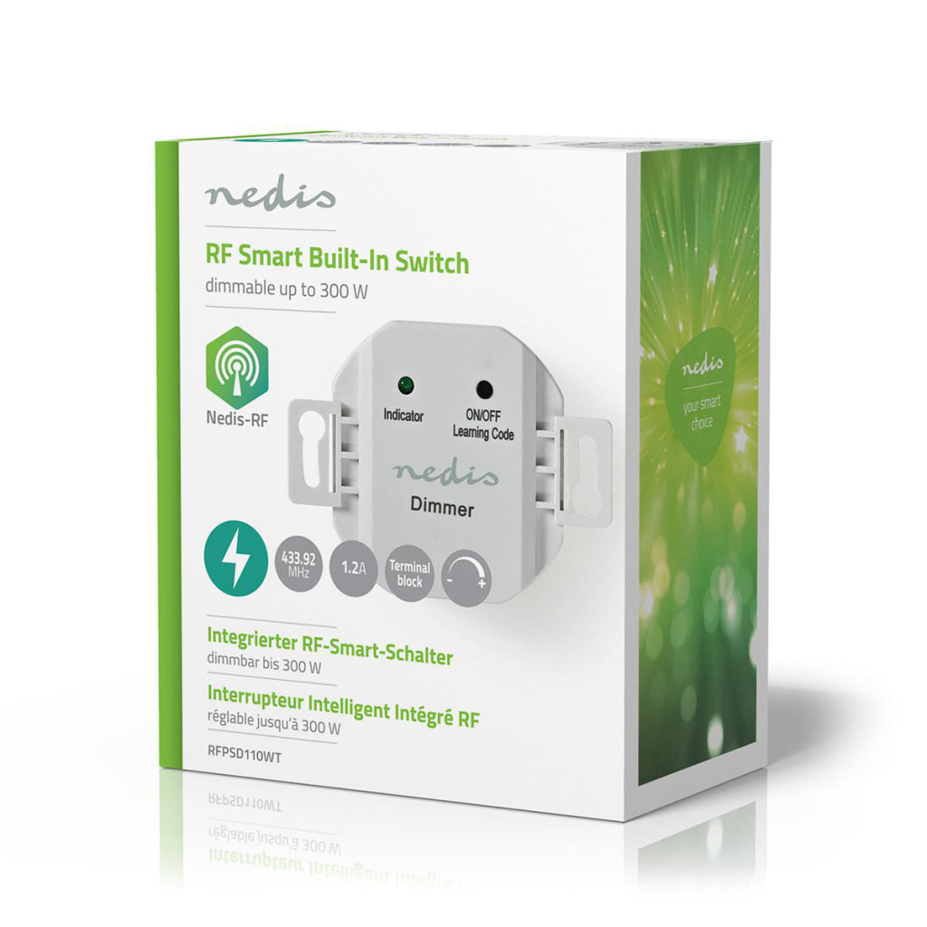Plaats deze Nedis® ingebouwde RF smart switch in het stroomcircuit van een bedrade installatie die op het lichtnet werkt om de aangesloten lichtbronnen op afstand te dimmen. Hij is ontworpen om in een Europese standaard installatiedoos van 70 mm te passen en heeft een inbouwdiepte van slechts 31,5 mm.