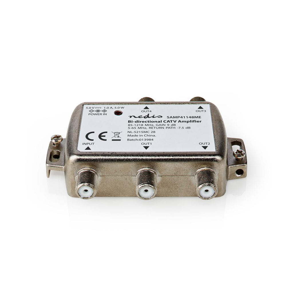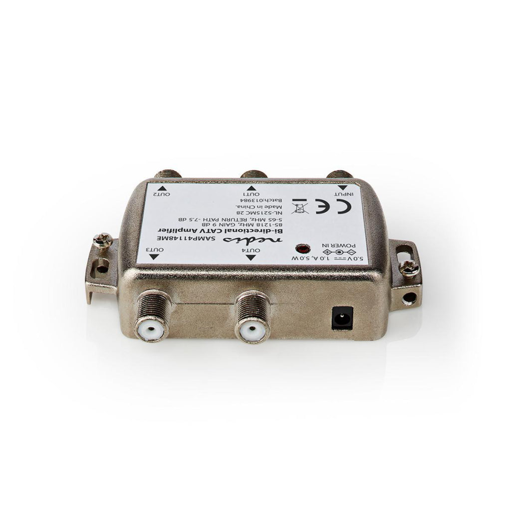 Deze CATV-versterker met versterkingsregeling en hellingsregeling biedt één uitgang voor ultraheldere TV-signalen met een versterking van 12 dB wanneer deze is aangesloten op uw televisie.