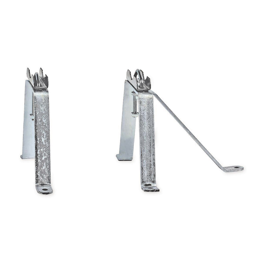 Set met twee beugels om satellietmasten stevig tegen een muur te bevestigen.