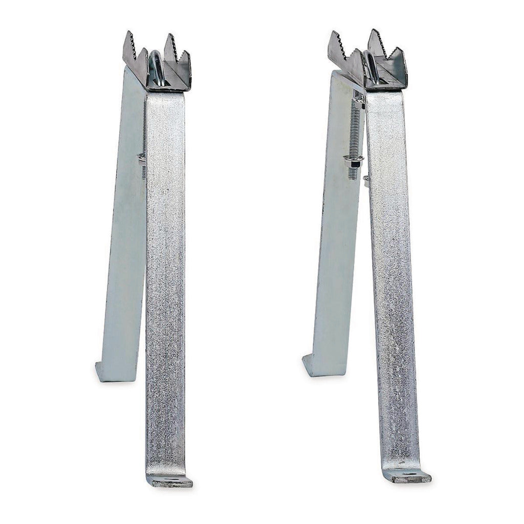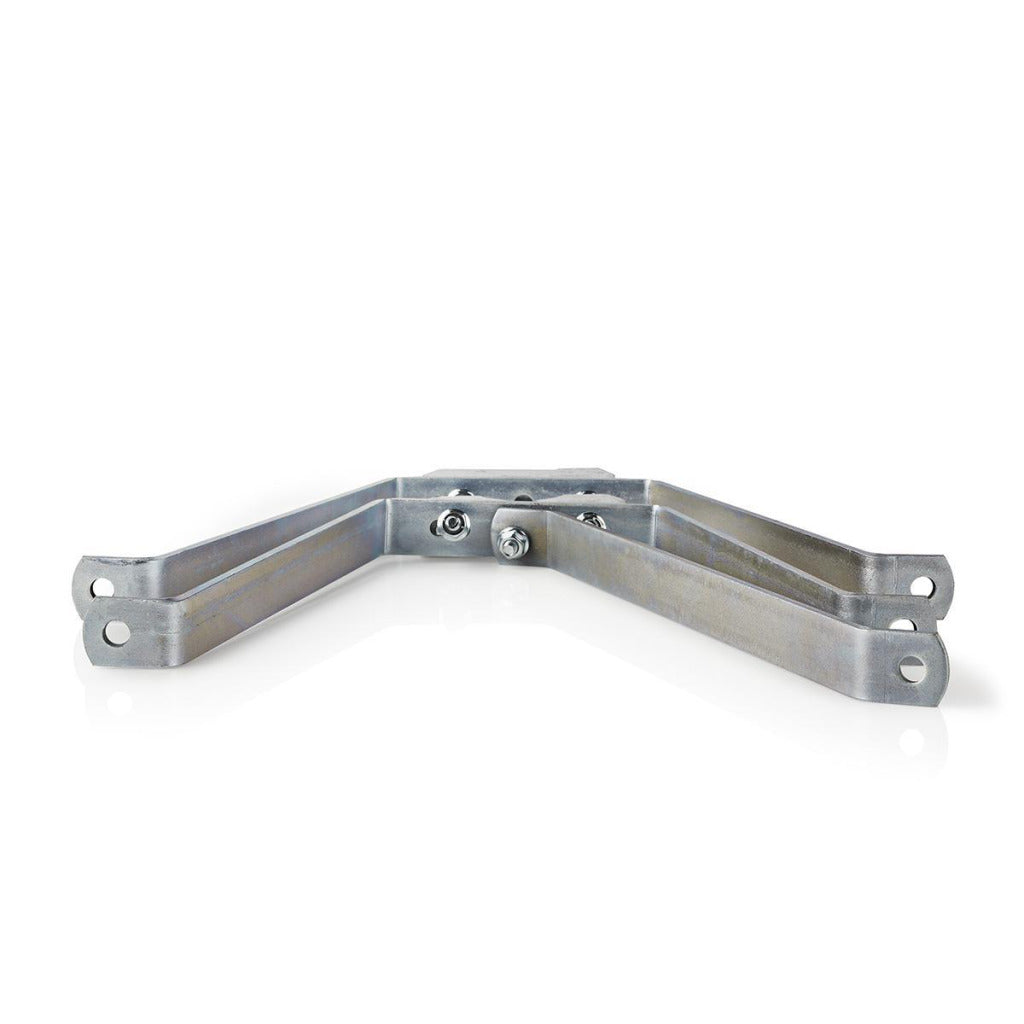 Set met twee beugels om satellietmasten stevig tegen een muur te bevestigen.