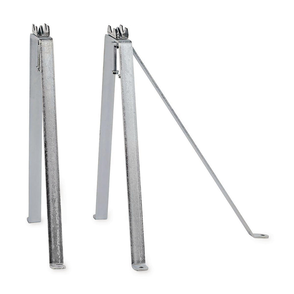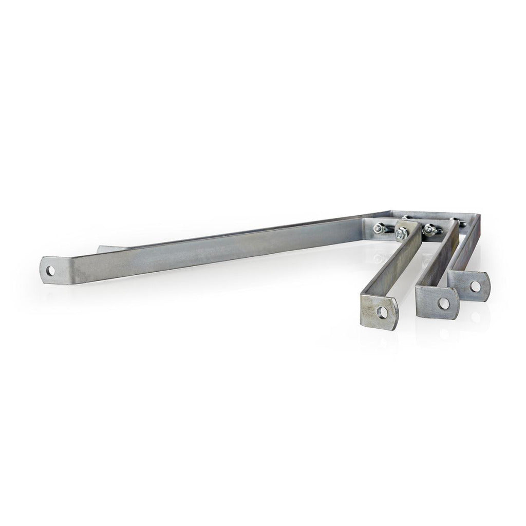 Set met twee beugels om satellietmasten stevig tegen een muur te bevestigen.