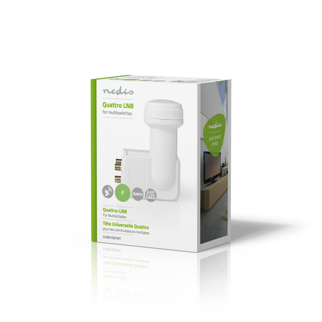 Monteer deze Nedis® quattro LNB op multiswitch-installaties die een superieure signaalsterkte- en kwaliteit vereisen. Hij vermindert het ruisgetal; deze varieert tussen 0,2 dB en 0,85 dB.