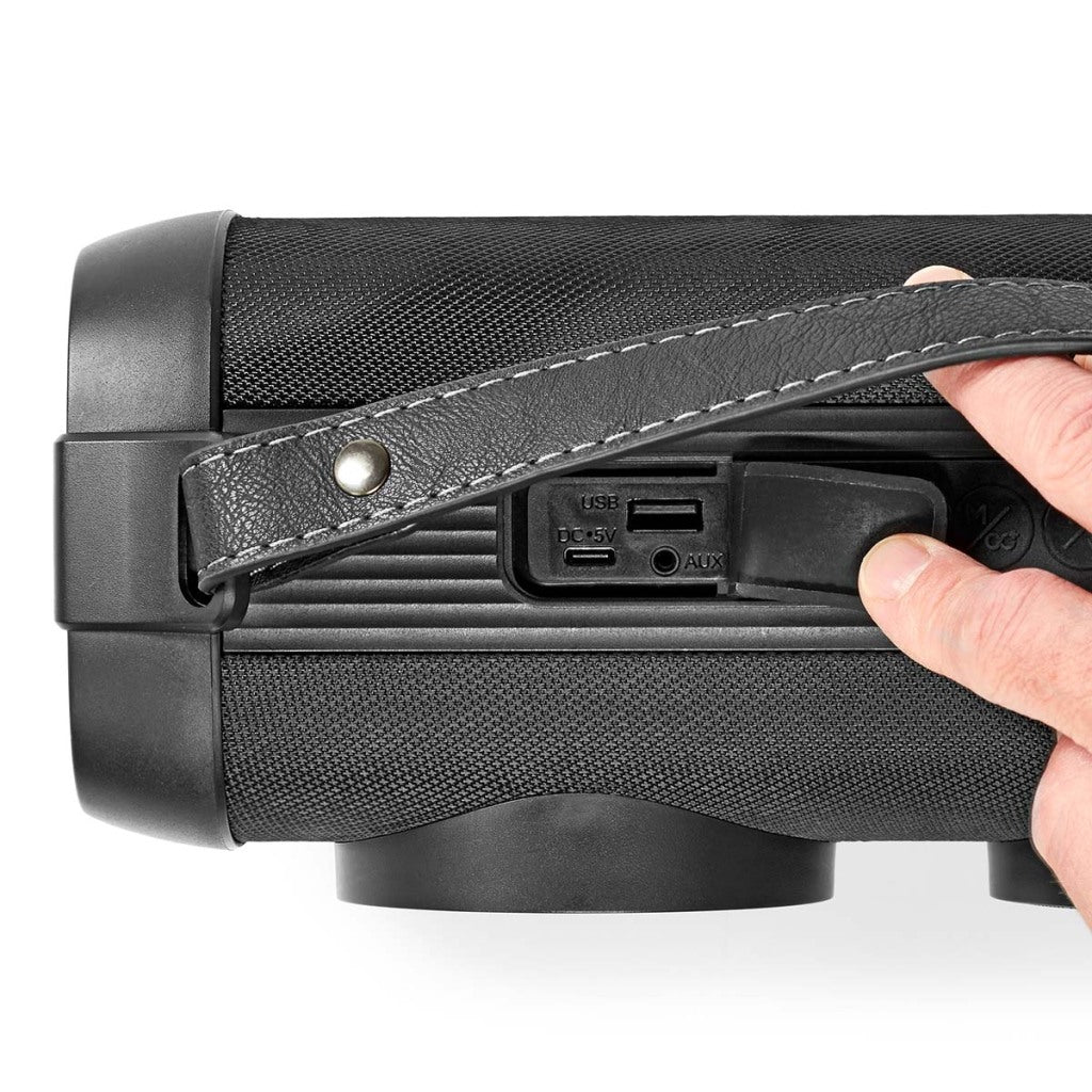 Deze Nedis RGB Bluetooth® party-boombox is een 2.0-kanaals draadloze speaker van 24 W die een sterk en zuiver geluid levert met een harde bas. Je kunt het feest een boost geven met de knipperende RGB LED-verlichting aan de voorkant. Deze RGB-lichten veranderen van kleur tijdens het afspelen van muziek, maar kunnen ook worden uitgeschakeld.