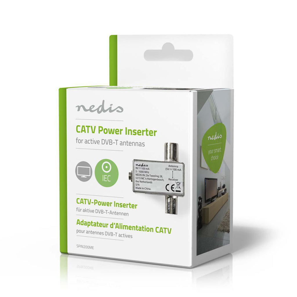 Professionele power inserter met metalen behuizing en gestabiliseerde uitgangsspanning. Geschikt als voeding voor de actieve DVB-T antennes voor Digitenne van KPN en andere digitale signalen.
