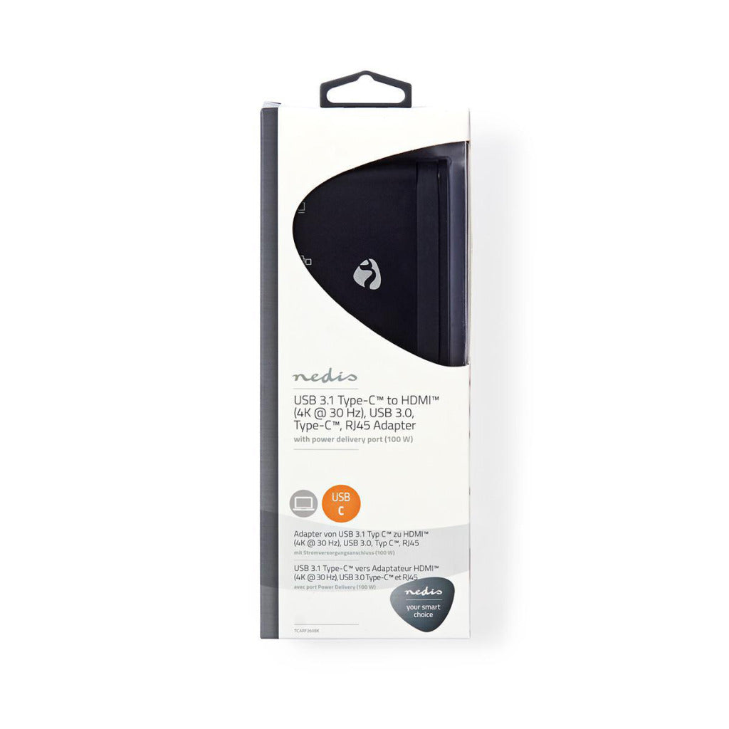 This portable USB-C adaptor with Gigabit Ethernet port, HDMI and USB hub can be used with any device with a USB-C port. It supports USB 3.0 super speed (5Gbps). Connect your TV or monitor to the HDMI port and connect your device with the fast Gigabit Ethernet port. The USB-C port supports PD3.0 (Power Delivery) up to 100W (with optional adaptor) so your can charge your notebook thru the USB-C adaptor.