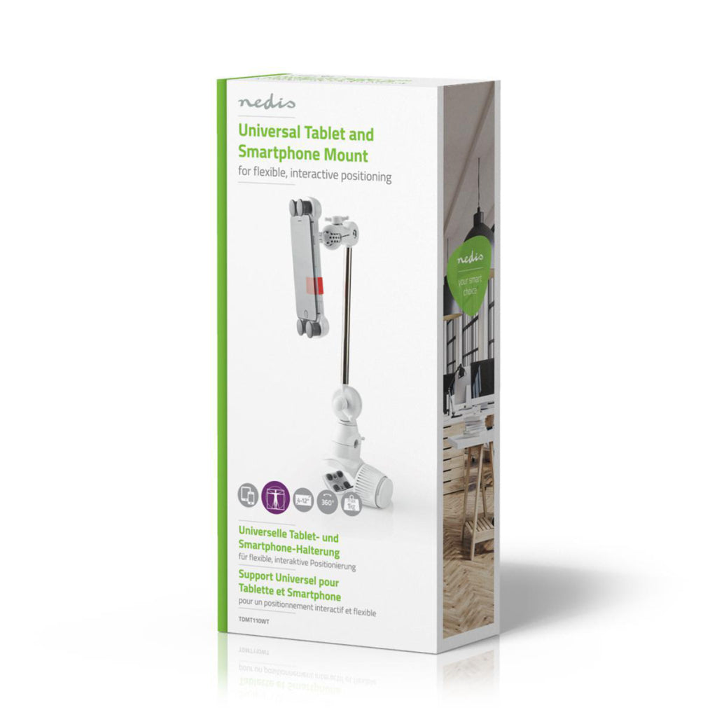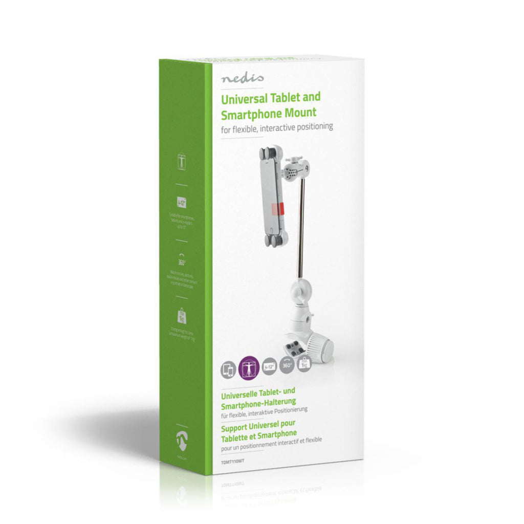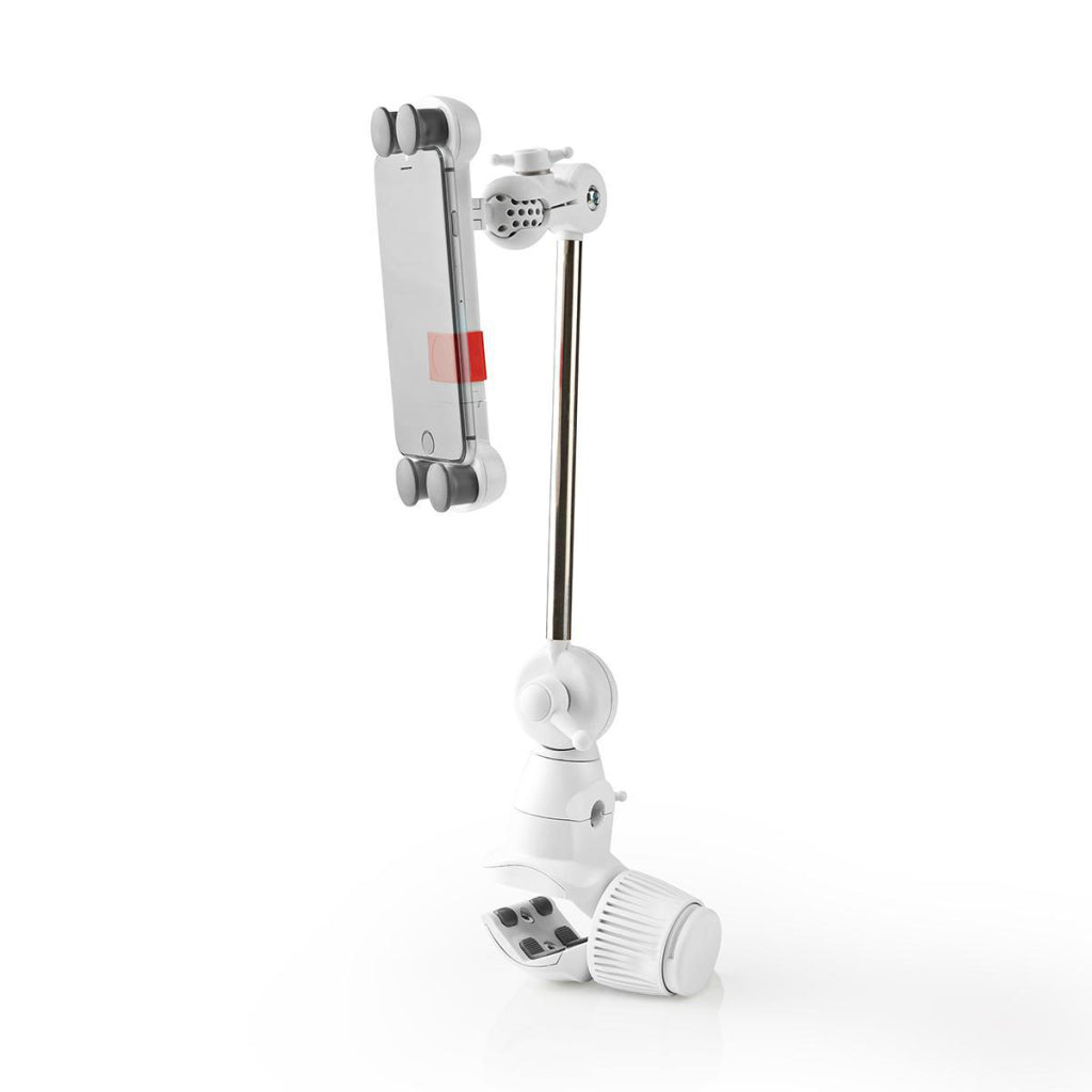De opening van de apparaatklem is verstelbaar van 4,7” tot 7,5” (12 cm - 19 cm). De veerklem is 360° draaibaar voor zowel horizontale als verticale positionering.
