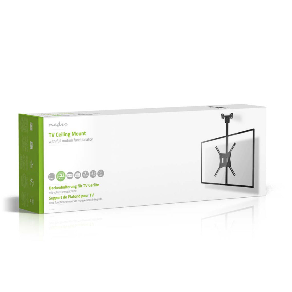 Deze VLM-MC10 plafondbeugel van Nedis® is de meest veelzijdige oplossing voor het ophangen van je tv. Waarom zou je je tv meer ruimte in laten nemen dan nodig? Met deze plafondbeugel hang je je tv eenvoudig aan het plafond. Zowel voor thuis als voor in de kantine of op kantoor is deze beugel een handige, ruimtebesparende oplossing. Je kunt hem draaien, kantelen en gemakkelijk in hoogte verstellen zodat je altijd zelf de beste kijkhoek bepaalt. Deze muurbeugel is geschikt voor tv?s met een beeldscherm met een formaat tussen de 26? (66 cm) en 42? (107 cm).