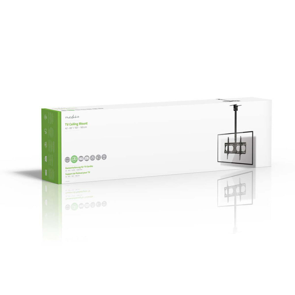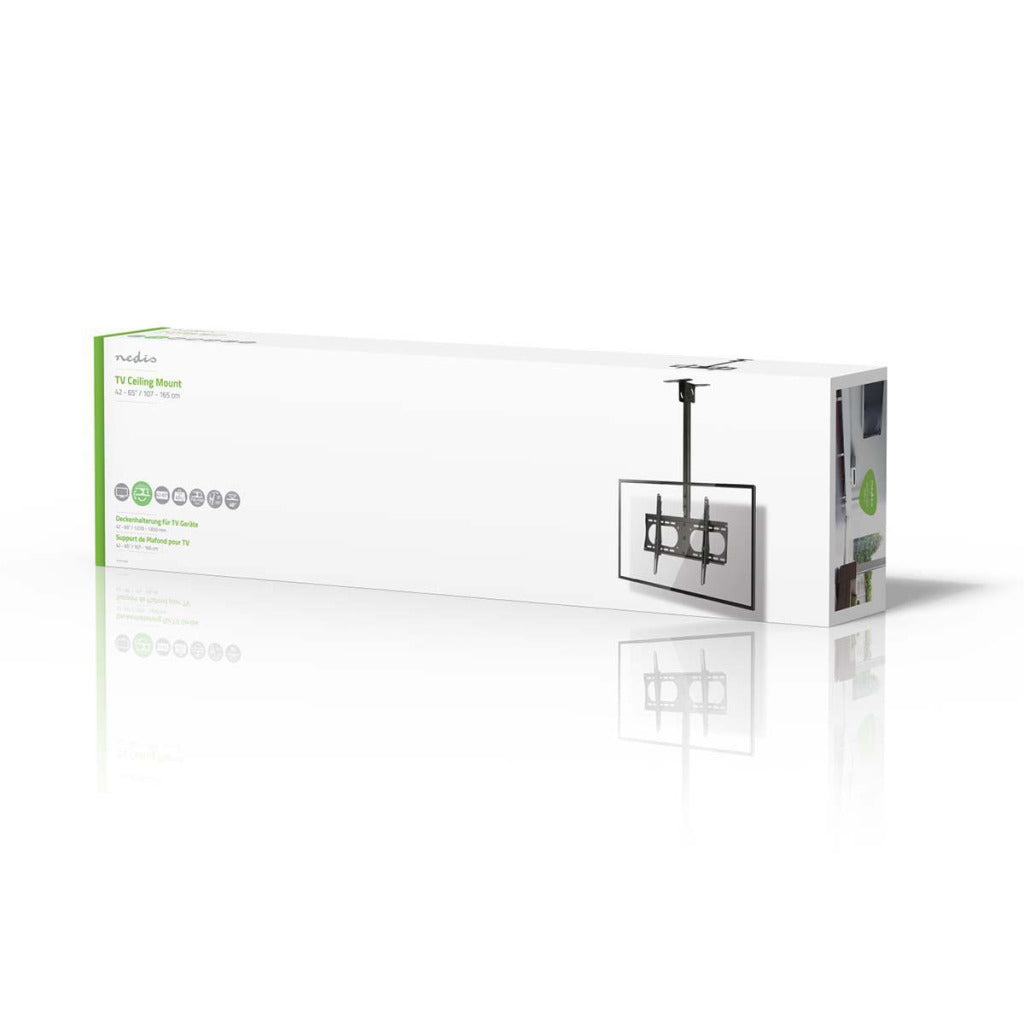Met deze VLM-LC10 plafondbeugel van Nedis® kun je je flatscreen tv aan het plafond bevestigen. Dit werk enorm ruimtebesparend. Ideaal wanneer je bijvoorbeeld een tv in je slaapkamer wilt, maar er geen plaats is voor een tv meubel of muurbeugel. Hij kan jouw flatscreen met gemak 180 graden draaien (90 graden naar links en 90 graden naar rechts) en kantelen. Zo heb je vanuit elke positie goed zicht op het beeld. Deze beugel is in lengte verstelbaar tussen 715 mm en 1160 mm hierdoor is hij ook geschikt voor hoge plafonds.