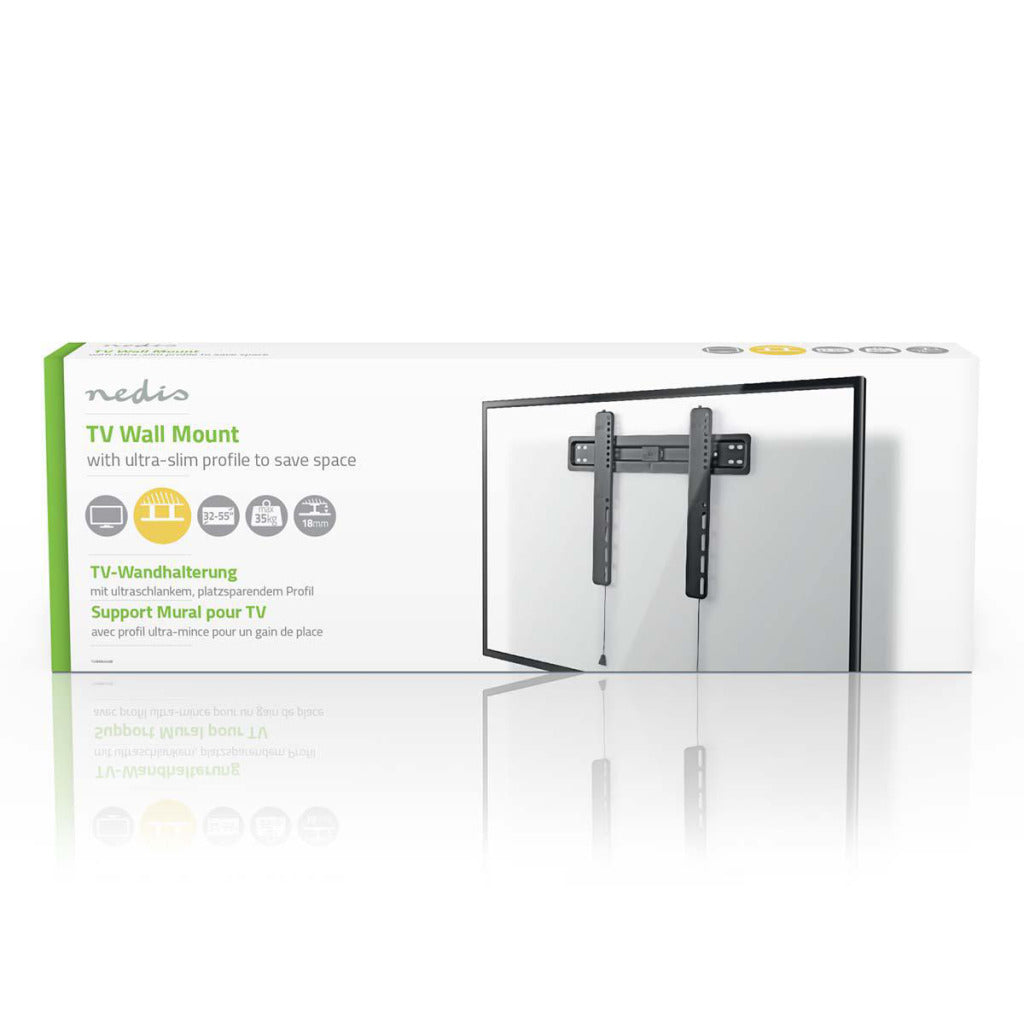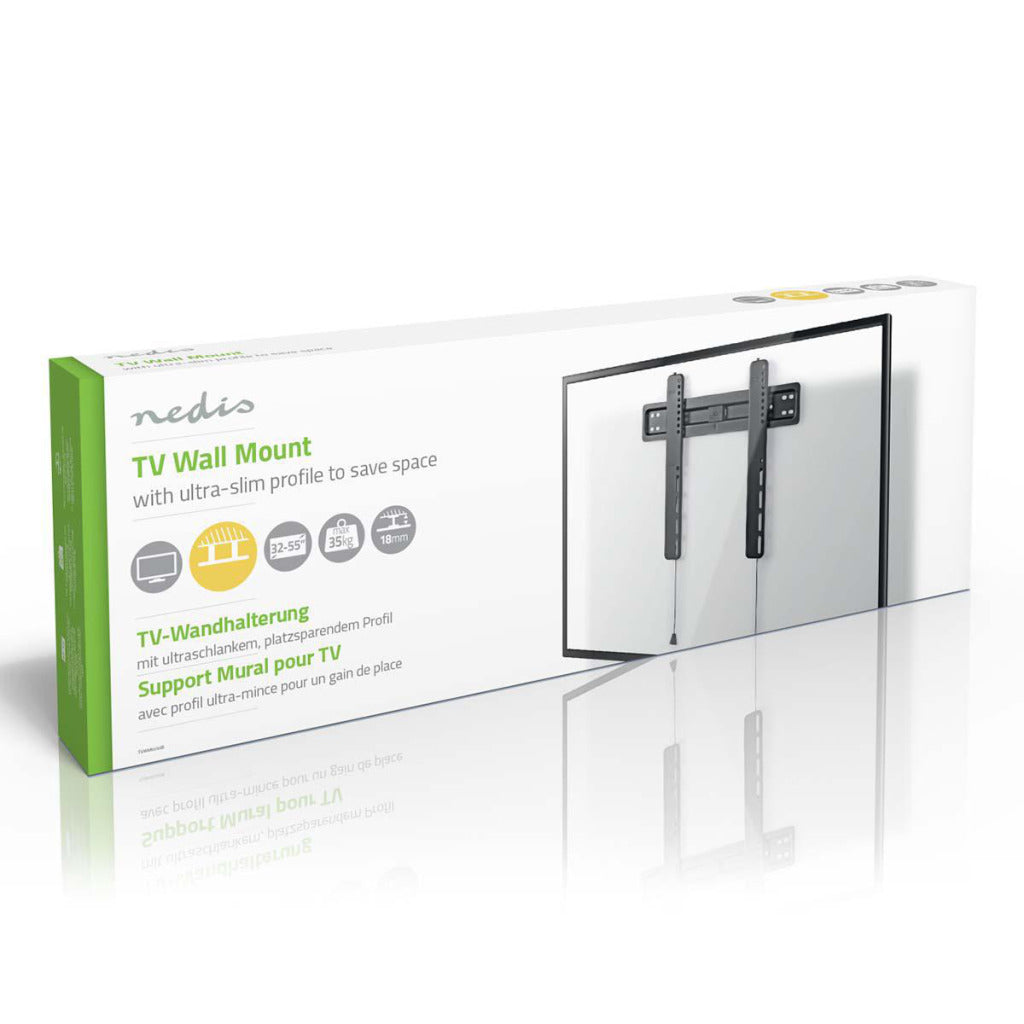 Deze Nedis® ultradunne vaste tv-wandsteun biedt een eenvoudige manier om uw tv op slechts 18 mm van de muur te bevestigen.