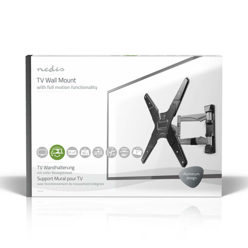Als je vanuit elke hoek in de kamer tv wilt kunnen kijken biedt de TVWM5530BK Premium tv muurbeugel van Nedis® de juiste oplossing. Deze muurbeugel is volledig beweegbaar en je kunt hem kantelen, draaien en zwenken zodat je je tv in iedere gewenste kijkpositie kunt plaatsen. De beugel is gemaakt van lichtgewicht aluminium wat zorgt voor optimale draagkracht. De draden van je tv worden verborgen middels het ingebouwde kabelbeheersysteem zodat kabels altijd netjes en geordend uit het zicht zijn weggewerkt.