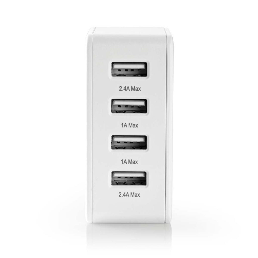 Laad vier smartphones of tablets tegelijkertijd op met deze Nedis® USB-thuislader met vier USB-poorten. Er is daarbij geen PC of notebook nodig. De thuislader is ook geschikt voor navigatie, digitale camera’s en nog veel meer apparaten met een USB-aansluiting. De lader zet spanning van 110 tot 240 VAC om naar 5 VDC en is daardoor zeer geschikt voor op kantoor, in huis of op reis.