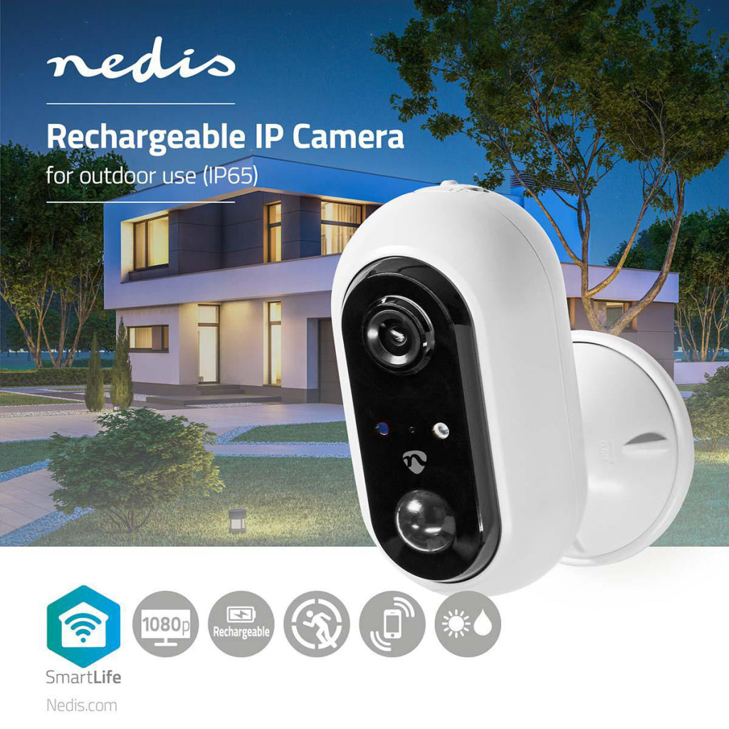 Deze Full HD Nedis® Smart IP-camera is zeer gebruiksvriendelijk, je hoeft hem alleen maar te verbinden met je Wi-Fi en je bent klaar om de buitenruimte van je huis in de gaten te houden, zelfs wanneer je niet thuis bent. De waterdichte IP65-behuizing van deze camera in combinatie met het infrarood LED-nachtzicht van 10 meter zorgt voor nog meer duurzaamheid en altijd helder zicht, ongeacht het seizoen, dag of nacht of zware weersomstandigheden.