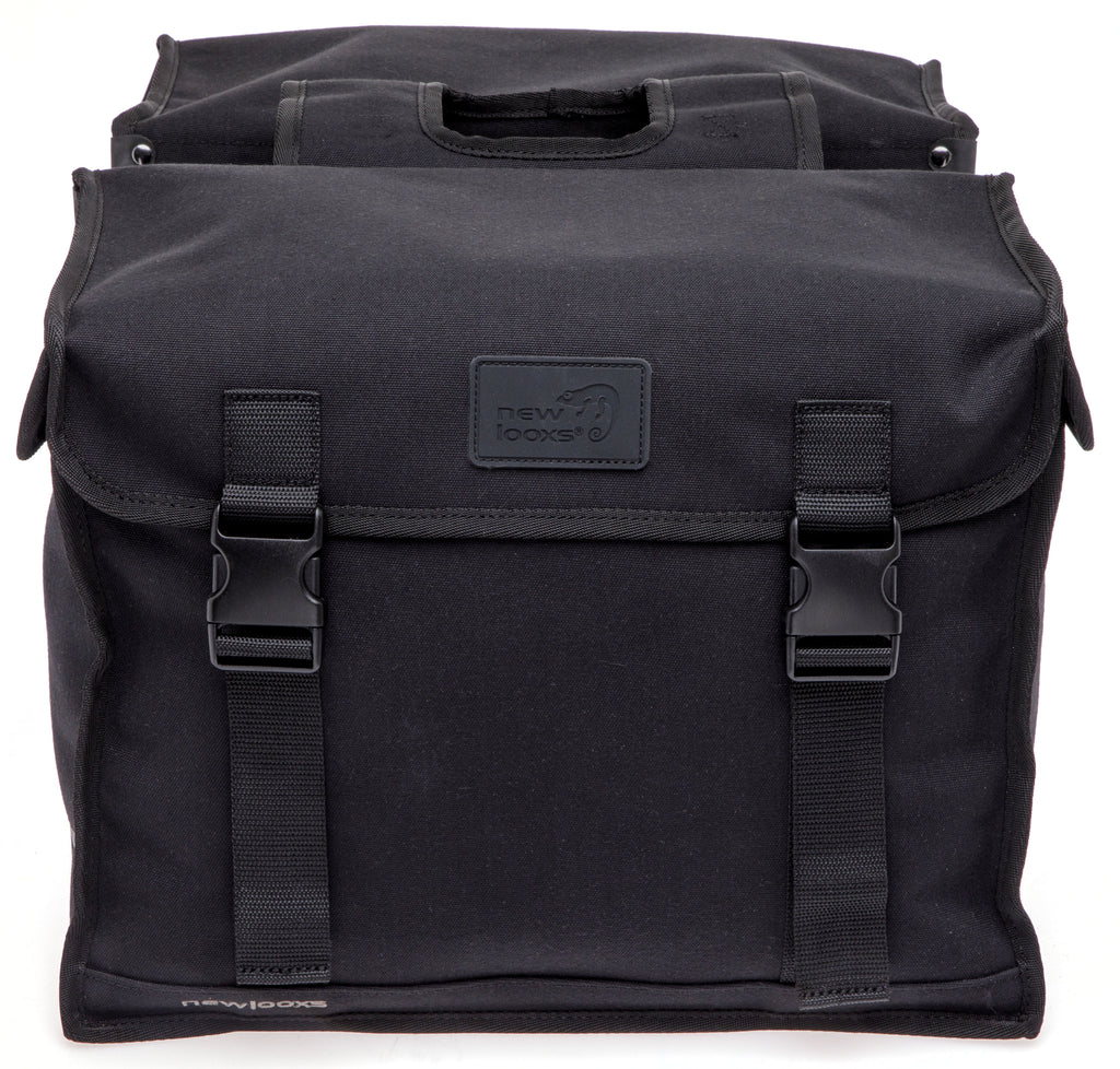 Dit zijn oersterke, grote dubbele boodschappentassen, ideaal als je veel ruimte nodig hebt om spullen mee te nemen op de fiets. Gemaakt van waterafstotend polyester in een canvaslook. Deze New Looxs Double Pannier Camping fietstassen hebben wij al meer dan 40 jaar in onze collectie. Deze tassen hebben zich dus wel bewezen! Veel ruimte Dit is een echte ruime fietstas, met een inhoud van 66 liter de grootste dubbele tas van New Looxs. Als de tas vol zit, dan houd je de tas goed bij elkaar door het extra aantrekbandje binnen in de tas. Daardoor gaat de tas niet openhangen. Je sluit de tas met kliksluitingen. De naden zijn dubbel gestikt en daarmee extra sterk. De tassen hebben een extra sterke achterplaat voor de stevigheid. Past op (bijna) elke fiets De fietstas wordt aan de bagagedrager bevestigd met riempjes. Dat maakt deze tas geschikt voor vrijwel alle fietsen, ook elektrische. De brug tussen de twee delen van de tas is 16,5 cm. Je kunt de fietstas extra vastzetten aan de zijkant van de bagagedrager met een klittenband riempje. Je zet de tas 1 keer vast en daarna zit deze goed bevestigd op de drager. De snelbinders zijn gewoon te gebruiken in combinatie met deze tas. Wij raden bij zwaar gebruik van deze tas aan om een New Looxs afstandhouder te gebruiken. Deze voorkomt dat de tas tegen het wiel aan komt als de tas zwaar beladen is. Je steekt de afstandhouder in de insteekstrips op de achterkant van de fietstas. Veilig onderweg Deze dubbele tas is gemaakt van waterafstotend polyester met canvas look. Als je de klep dichtmaakt is de tas goed bestand tegen kleine regenbuien. Het materiaal is ook nog eens erg sterk. Voor de veiligheid is deze tas afgewerkt met reflectie voor een betere zichtbaarheid in het donker.
