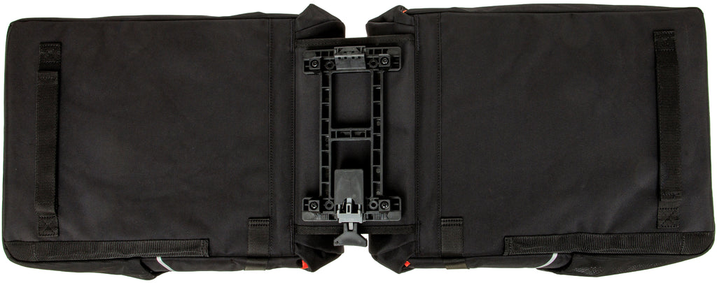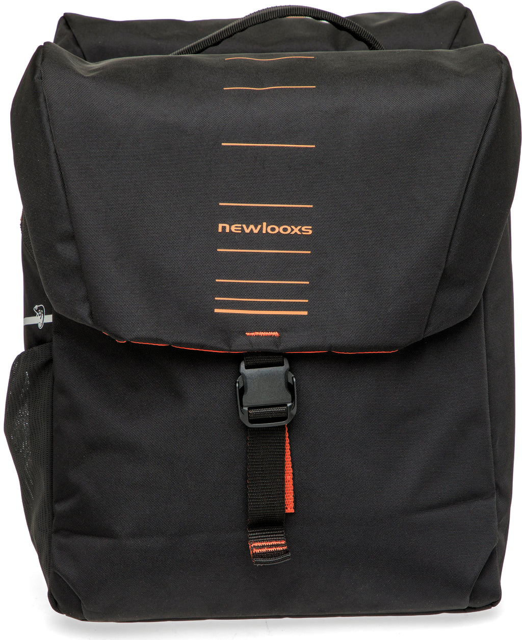 Deze populaire tas is vernieuwd en heeft een frisse look gekregen. Kan iets dat al heel goed is, nóg beter worden? Wij denken van wel! De Vigo Double is een degelijke dubbele fietstas met een sportieve uitstraling. De kleuraccenten op de tas geven de tas een frisse look. Met een handig formaat is deze moderne tas perfect voor dagelijks gebruik. Deze tas is geschikt voor fietsen met een MIK bagagedrager. De dubbele tas beschikt over 2 hoofdvakken en 3 extra vakken. Vigo is gemaakt van gerecycled polyester, een bewustere keuze. De bijgeleverde regenhoes zorgt ervoor dat alles droog blijft. Praktisch en sportief design Wie veel kilometers maakt, mag hoge eisen stellen aan een fietstas. De Vigo Double heeft veel praktische kenmerken. De hoofdvakken van de tas sluit je met een aansnoersluiting. Vervolgens sluit je de klep eenvoudig met kliksluitingen. Deze sluitingen van deze tas openen en sluiten extra makkelijk. Fijn als je je handen vol hebt met boodschappen, of last hebt van bijv. reumatische klachten. De tas heeft 2 ruime hoofdvakken, elastische zijvakken en 3 extra vakken. Zo neem je alle spullen goed georganiseerd mee. Eenvoudige bevestiging met MIK 2.0 De Vigo dubbele fietstas met MIK 2.0 adapter past op MIK bagagedragers. Kijk dus even goed of jij een bagagedrager met MIK-systeem op jouw fiets hebt. Heb je dit niet, dan kun je gebruik maken van een MIK Carrierplaat die je op je bagagedrager bevestigt. De tas heeft een voorgemonteerde MIK 2.0 adapter en wordt geleverd met 2 sleutels waardoor je de tas heel snel op de bagagedrager kunt klikken. Wil je de tas weer van de fiets afnemen, dan kan dit met 1 handbeweging. De kleine sleutel is geschikt als je de tas regelmatig meeneemt en dus van de bagagedrager afhaalt. Deze sleutel is uitschuifbaar en dus langer dan de kleine versie. Deze grotere sleutel is speciaal ontwikkeld voor grotere accessoires, die op de fiets blijven zitten. Je kunt dus kiezen welke sleutel je gebruikt, afhankelijk van of de tas op de fiets blijft zitten, of deze regelmatig van de bagagedrager wordt afgenomen. Het voordeel van het MIK bevestigingssysteem is dat de tas altijd goed bevestigd is op de bagagedrager. Daardoor blijft de tas goed zitten en hangt deze altijd mooi recht. Je kunt de fietstas extra vastzetten aan de zijkant van de bagagedrager met een klittenband riempje. Veilig onderweg De Vigo Double is stevig en vormvast door de kunststof platen in de bodem en achterwand. Daarnaast is de fietstas extra verstevigd met foam. Daardoor blijft de tas goed in vorm en kun je makkelijk je spullen in de tas stoppen. De dubbele Vigo fietstas is gemaakt van waterafstotend gerecycled polyester. Doordat de klep over de tas heen valt, is de tas goed waterafstotend voor kleinere regenbuien. Deze tas wordt geleverd mét bijpassende regenhoes. Zo heb je deze altijd bij de hand en maak je de tas 100% waterdicht. De tas is afgewerkt met reflectie voor extra veiligheid in het donker. Op de zijkanten van de tas zitten bandjes waar je eenvoudig een ledlampje op kunt bevestigen voor extra zichtbaarheid Afstandhouder Je kunt bij de tas een New Looxs afstandhouder gebruiken, deze is separaat te koop. Deze voorkomt dat de tas tegen het wiel aan komt. Je steekt de afstandhouder in de insteekstrips op de achterkant van de fietstas. Dan blijft de tas, ook zwaar beladen, altijd netjes recht op de bagagedrager hangen.