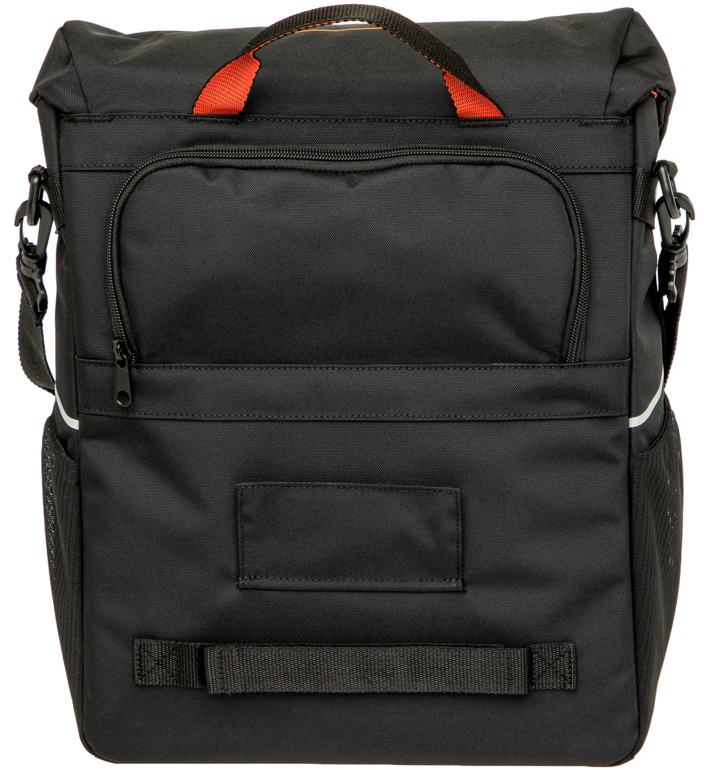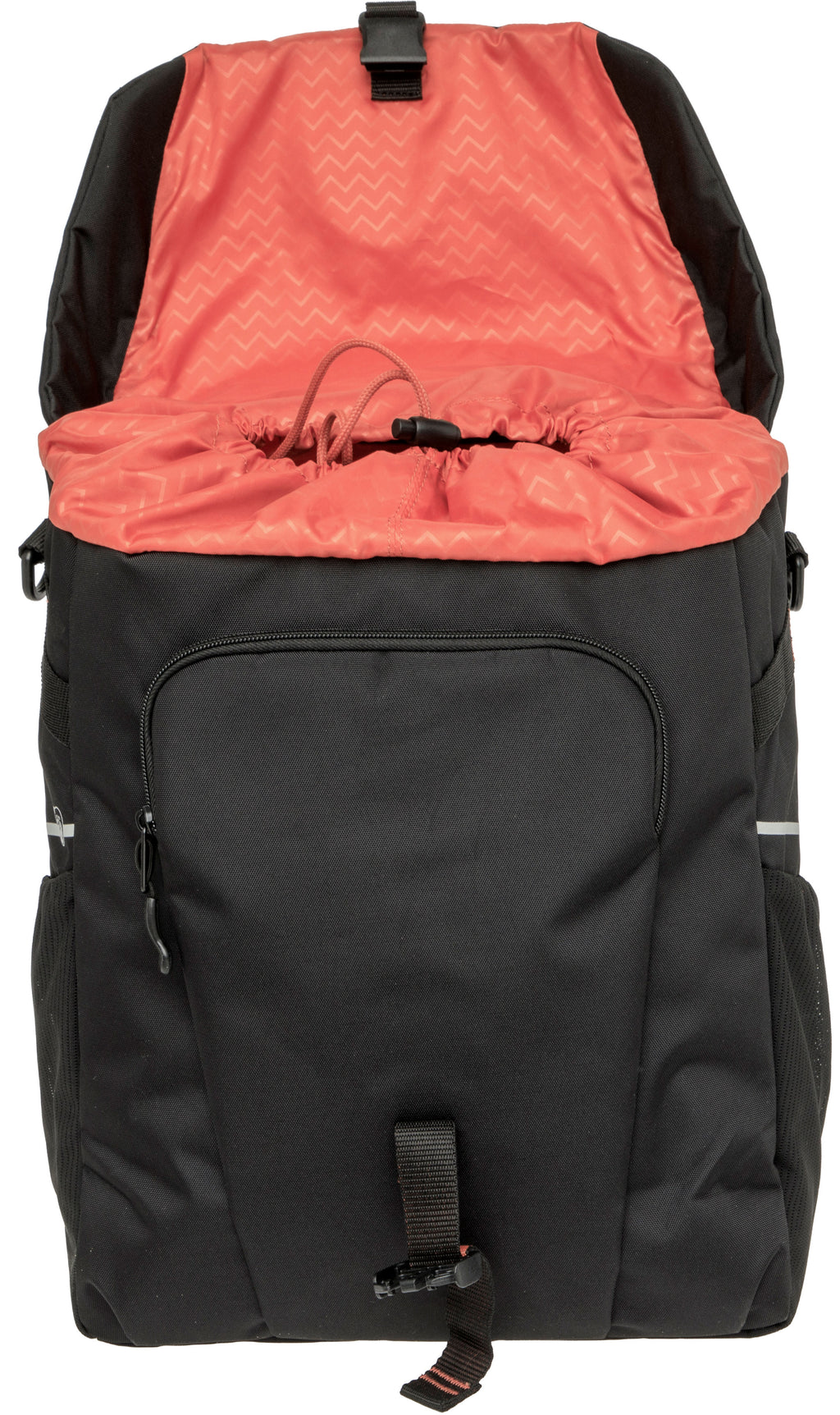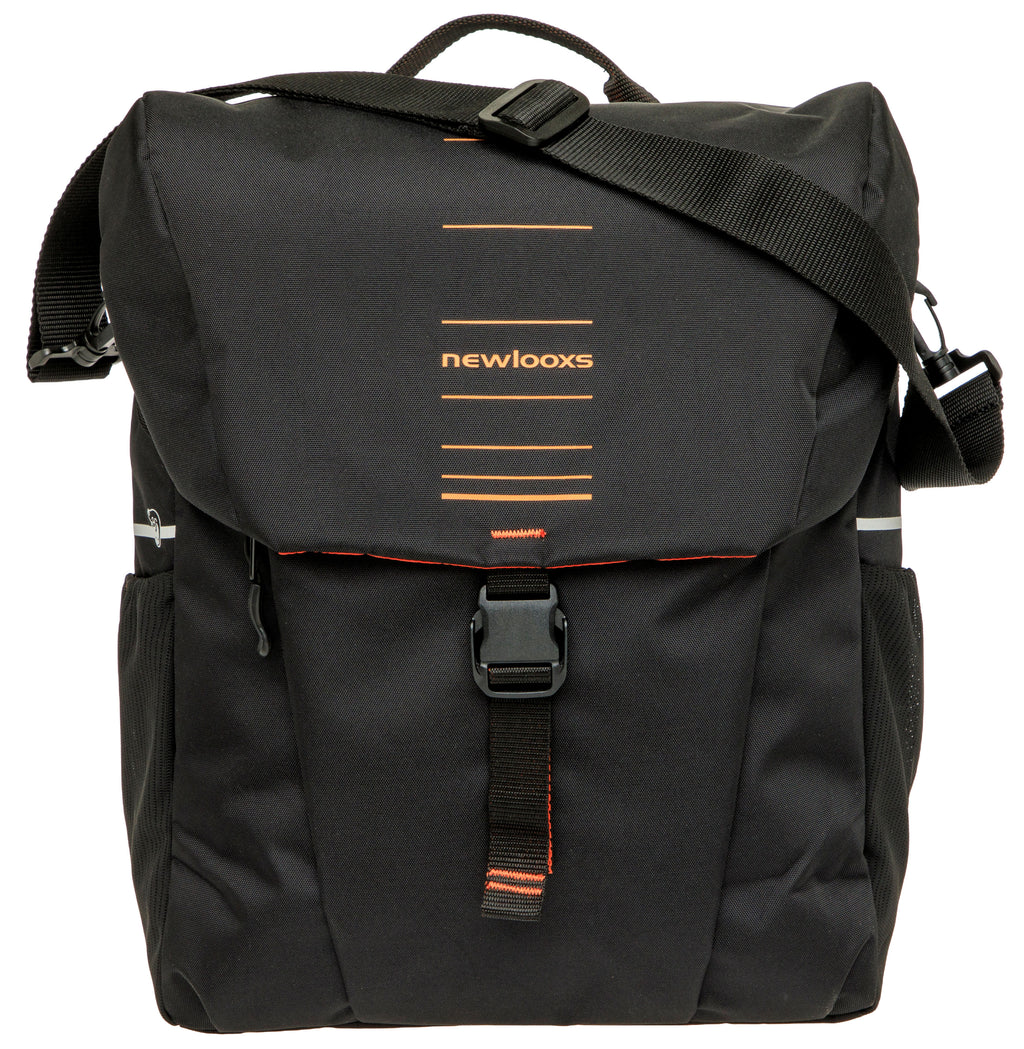 Deze populaire tas is vernieuwd en heeft een frisse look gekregen. Kan iets dat al heel goed is, nóg beter worden? Wij denken van wel! De Vigo Single is een enkele fietstas met een sportieve uitstraling. De kleuraccenten op de tas geven de tas een frisse look. Met een handig formaat is deze moderne tas perfect voor dagelijks gebruik. Als je de tas van de fiets haalt, dek je de haken af met een ritsvakje, waardoor je de tas als schoudertas kan gebruiken. De tas heeft een verstelbare, afneembare schouderband. De fietstas past op vrijwel alle fietsen, ook elektrische. De Vigo is gemaakt van gerecycled polyester, een bewustere keuze. De bijgeleverde regenhoes zorgt ervoor dat alles droog blijft. Praktisch en sportief design Wie veel kilometers maakt, mag hoge eisen stellen aan een fietstas. De Vigo Single heeft veel praktische kenmerken. Het hoofdvak van de tas sluit je met een aansnoersluiting. Vervolgens sluit je de klep eenvoudig met kliksluitingen. Deze sluitingen van deze tas openen en sluiten extra makkelijk. Fijn als je je handen vol hebt met boodschappen, of last hebt van bijv. reumatische klachten. Dankzij het ruime hoofdvak met extra ritsvakje, 2 elastische zijvakken en een extra voorvak met rits, neem je spullen goed georganiseerd mee. Eenvoudige bevestiging met R&K haken De Vigo enkele fietstas wordt op de bagagedrager bevestigd met R&K haken. Rixen & Kaul haken kunnen worden afgesteld op de breedte van een bagagedrager. Zo passen de haken perfect op iedere bagagedrager met een buisdiameter van 6 tot 16 mm. De extra vergrendeling tussen de haken zorgt ervoor dat de tas niet zomaar van de bagagedrager getrokken kan worden. De bevestigingshaken kunnen afgedekt worden met een ritsvak. Hierdoor kun je de tas als schoudertas gebruiken, door middel van de verstelbare, afneembare schouderband. Veilig onderweg De Vigo Single is stevig en vormvast door de kunststof platen in de bodem en achterwand. Ook is de fietstas extra verstevigd met foam. Daardoor blijft de tas goed in vorm en kun je makkelijk je spullen in de tas stoppen. De enkele Vigo fietstas is gemaakt van waterafstotend gerecycled polyester. Doordat de klep over de tas heen valt, is de tas goed waterafstotend voor kleinere regenbuien. Wil je dat de tas ook zware regenbuien doorstaat? Deze tas wordt geleverd mét bijpassende regenhoes. Zo heb je deze altijd bij de hand en maak je de tas 100% waterdicht. De tas is afgewerkt met reflectie voor extra veiligheid in het donker. Op de zijkanten van de tas zitten bandjes waar je eenvoudig een ledlampje op kunt bevestigen voor extra zichtbaarheid.