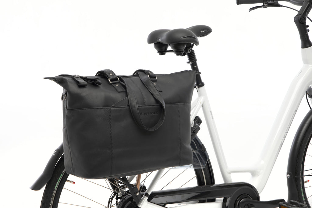 De moderne fietstas Verla is gemaakt van luxe en stevig leer. Dit is een fietstas, schoudertas en laptoptas in 1. De exclusieve business tas is voorzien van een zeer ruim hoofdvak, vele kleinere vakjes, een gewatteerd vak speciaal voor de laptop en een losse hoes voor een tablet. Zo neem je al jouw spullen goed georganiseerd mee. Losse spullen berg je snel op in het brede ritsvak aan de buitenkant. Dit maakt hem ideaal voor woon-werkverkeer. De verstelbare R&K variohaken waarmee de tas aan de bagagedrager bevestigd wordt, zijn te verbergen achter een ritsvak. In combinatie met de afneembare en verstelbare schouderband transformeert deze fietstas eenvoudig tot stijlvolle en praktische kantoortas. De Verla past vrijwel op iedere fiets: zowel stadsfietsen als elektrische fietsen. Verkrijgbaar in de kleuren cognac en zwart. Eigenschappen: Gemaakt van luxe leer Sluiting d.m.v. rits Afdekbare R&K variohaken voor bevestiging op de bagagedrager Geschikt voor elektrische fietsen Extra binnenvak voor 15? laptop (37cm breed) Handige verstelbare en afneembare schouderband Produktspecificaties: Materiaal: Leer Groep: Laptoptas Type: Enkele tas, Laptoptas Plaats op fiets: Bagagedrager Waterbestendig: Spatwaterdicht Inhoud: 21 liter Gewicht: 2,50 kg Afmeting: 34cm x 18cm x 44cm Bevestiging: R & K haken Kleur: zwart