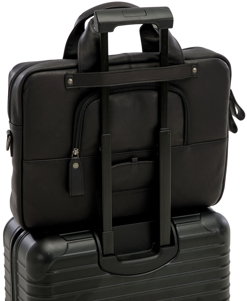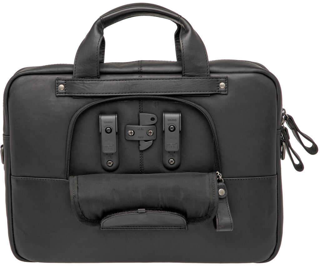 Stijlvol en praktisch, dat is de Luko laptoptas. De tas ziet eruit als een gewone laptoptas, maar is speciaal ontworpen om jouw laptop veilig en comfortabel te vervoeren tijdens je fietstochten en op reis. Met hoogwaardig wax pull-up leer en handige opbergvakken is deze tas de perfecte fietstas voor dagelijks woon-werkverkeer en dankzij de trolleyband, ook ideaal voor zakenreizen. De verstelbare R&K variohaken waarmee de tas aan de bagagedrager bevestigd wordt, zijn te verbergen achter een ritsvak. De Luko past vrijwel op iedere fiets: zowel stadsfietsen als elektrische fietsen. Productspecificaties: Gemaakt van luxe leer Type: Enkele tas, Laptoptas Plaats op fiets: Bagagedrager Waterbestendig: Waterdicht Inhoud: 7.5 liter Gewicht: 1,75 kg Afmeting: 42cm x 6cm x 30cm Geschikt voor 15" laptop Met trolleyband en verstelbare en afneembare schouderband 1 Hoofdvak met ritsvak en organizer; 1 voorvak met rits met insteekvakken Afdekbare R & K variohaken voor bevestiging op bagagedrager Inclusief regenhoes Geschikt voor elektrische fietsen Ideaal voor woon-werk verkeer en zakenreizen Kleur: zwart, cognac