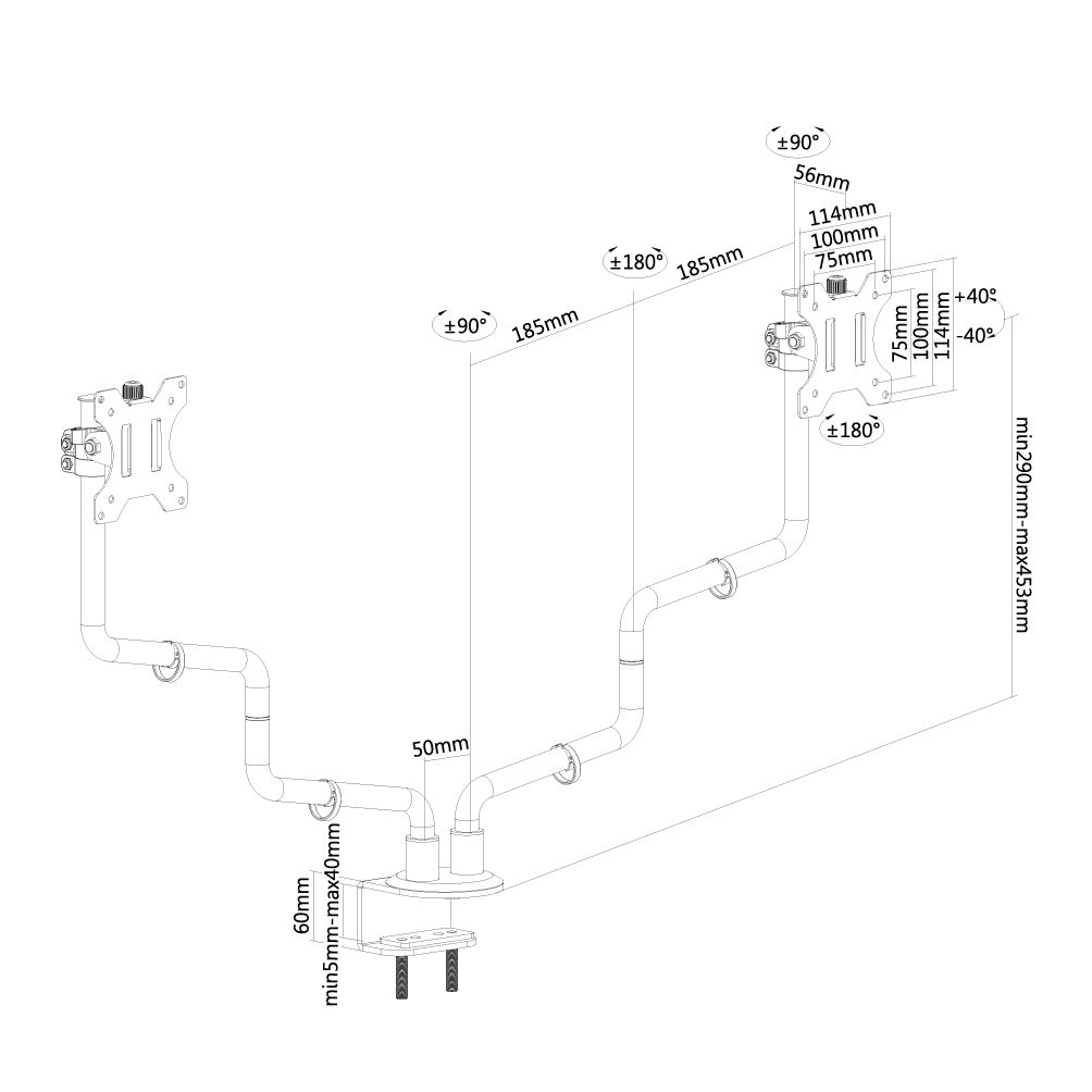 Met deze Newstar FPMA-D010DBLACK Flatscreen bureausteun bevestigt u twee flatscreens van maximaal 30" aan het bureau via een bureauklem of bladdoorvoer. Door gebruik te maken van een monitorarm profiteert u optimaal van de mogelijkheden van uw monitor. De monitorarm is eenvoudig in hoogte en diepte te verstellen. Tevens kunt u het scherm kantelen, zwenken en roteren. Hierdoor creëert u de ideale ergonomische werkhouding. Dit verkleint de kans op nek- en rugklachten. Kabels zijn netjes weg te werken aan de onderzijde van de horizontale arm. De FPMA-D010 DBLACK heeft 3 draaipunten en is geschikt voor 2 schermen t/m 30". Het draagvermogen van de arm is 7 kg per scherm. Dit product is geschikt voor schermen met een VESA gatenpatroon van 75 x 75 mm of 100 x 100 mm. Heeft u een afwijkend (groter) gatenpatroon, dan kunt u dit oplossen met een van onze VESA verloopplaten.