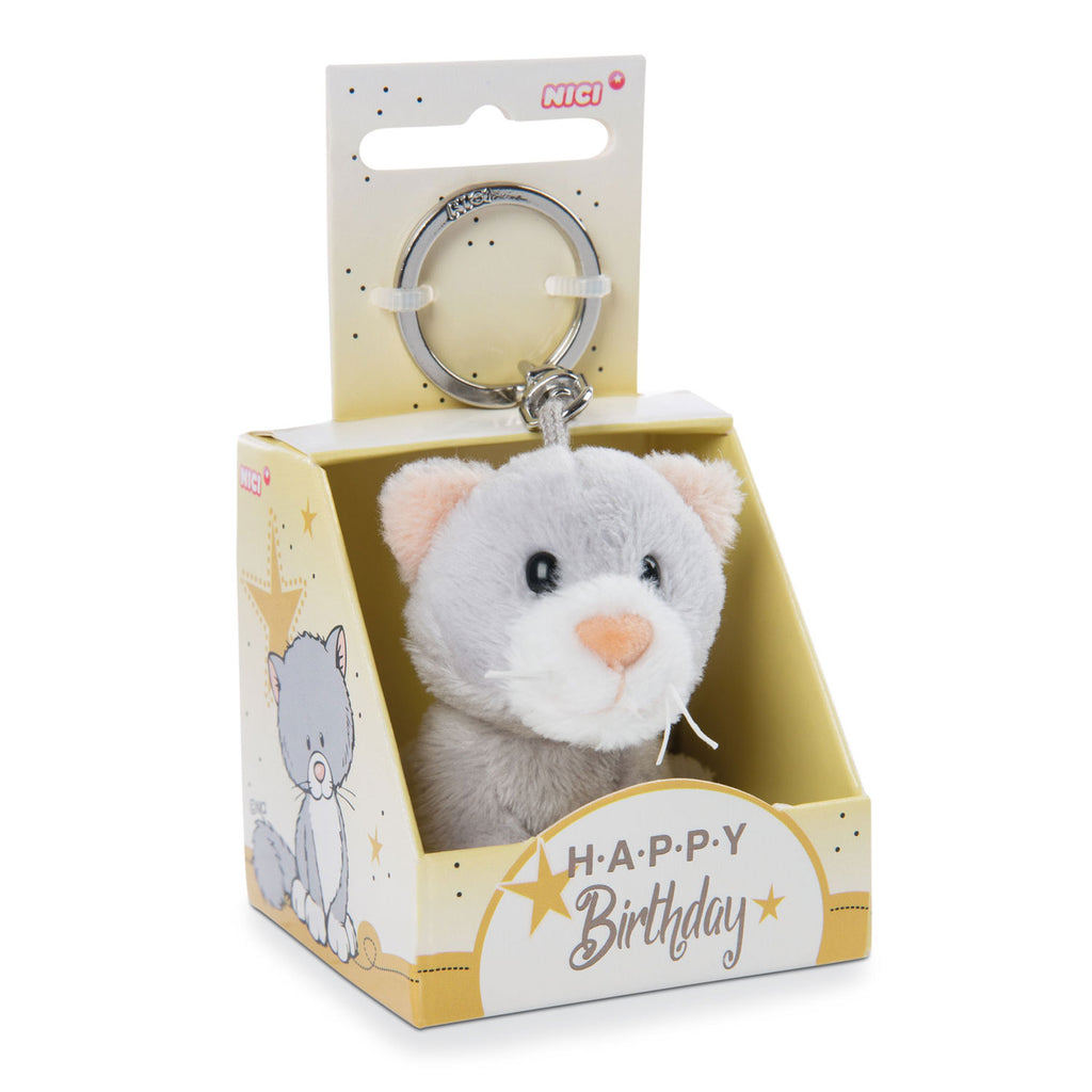 Het schattige, grijze poesje met de schattige NICI-knoopogen is gemaakt van knuffelzacht pluche en draagt een stevige sleutelhanger met het NICI-logo op haar hoofd. Ze is meer dan blij om te worden gehecht aan rugzakken, portemonnees of schooltassen. Voor een verjaardag of als lief cadeau - de kat wordt geleverd in een uitvoerig en liefdevol vormgegeven geschenkdoos die op de achterkant individueel kan worden geëtiketteerd. De boodschap "Happy Birthday" is de ideale manier om jong en oud te feliciteren met hun verjaardag.