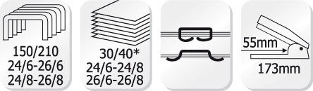 Grote, robuuste niettang voor langdurig gebruik. Nietsoort: 24/6-24/8 en 26/6-26/8. keerbare matrijs voor het open en gesloten nieten. Verchroomd metalen apparaat. Capaciteit maximaal 40 vel.