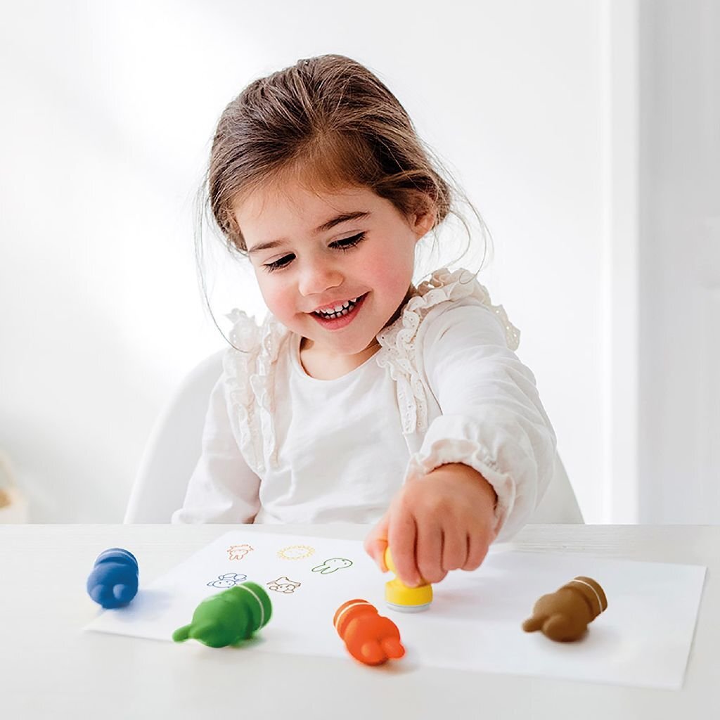 5 zelfstempelende stempels met 3D-nijntjevorm. Geschikt voor kinderen vanaf 3 jaar.