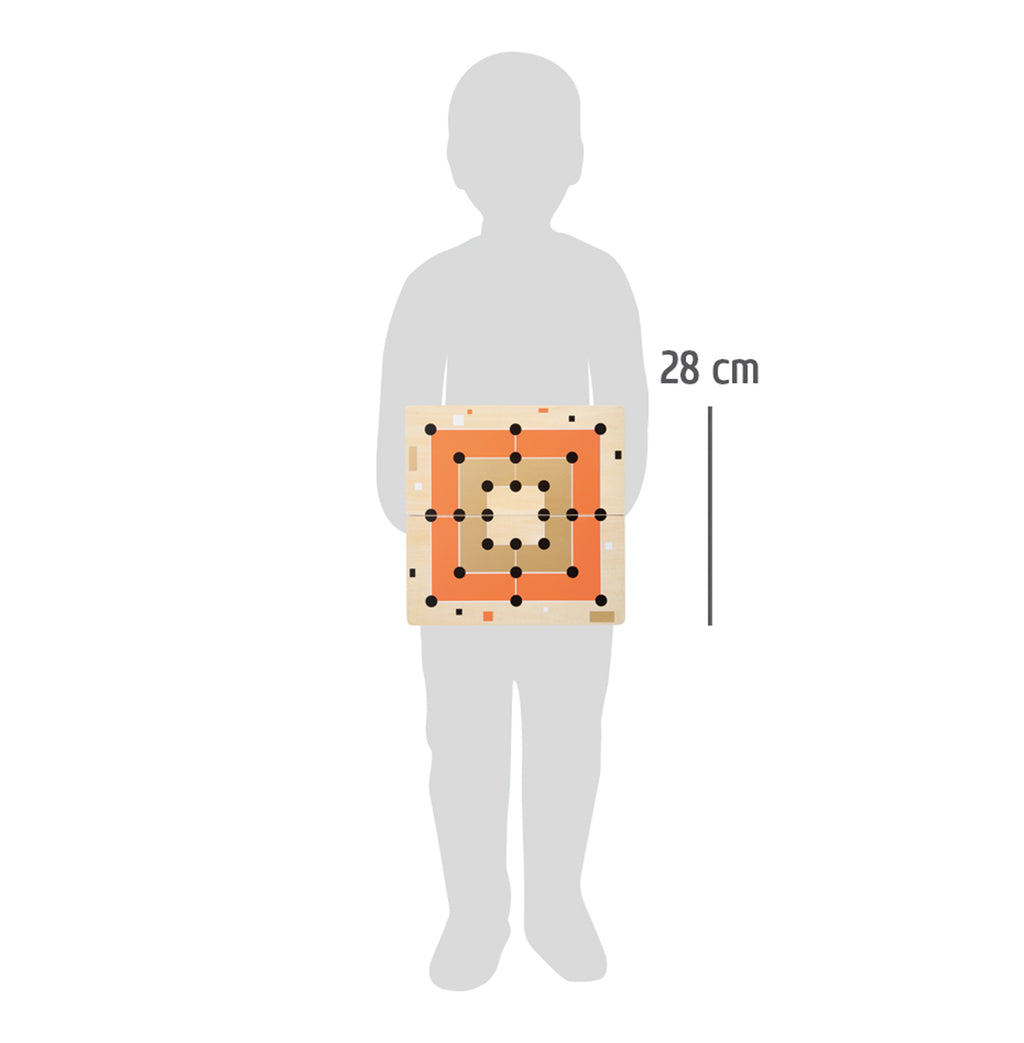 De twee klassieke spellen Nine Men’s Morris en Solitaire maken indruk met hun elegante, moderne look en zijn gegarandeerd blikvangers voor de volgende spelavond! Bijzonder aantrekkelijk zijn de verfijnde goudaccenten in combinatie met terracottakleur, helder zwart/wit en natuurlijk hout. Het 2-in-1 speelbord is opgedeeld in twee delen zodat het ruimtebesparend kan worden opgeborgen. De geïntegreerde magneten zorgen ervoor dat de twee helften van het bord bij elkaar blijven. Wordt geleverd met hoogwaardige speldoos voor opslag. Een door en door stijlvol gezelschapsspel in een onopvallende designerlook. De speelstukken van massief hout voelen prettig aan tijdens het spelen.