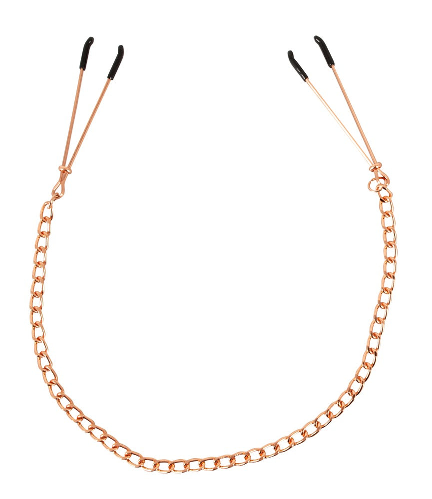 Rose gold-coloured breast chain from Magic Shiver with 2 nipple clamps. The pressure of the clamps can be easily adjusted with the sliding rings.