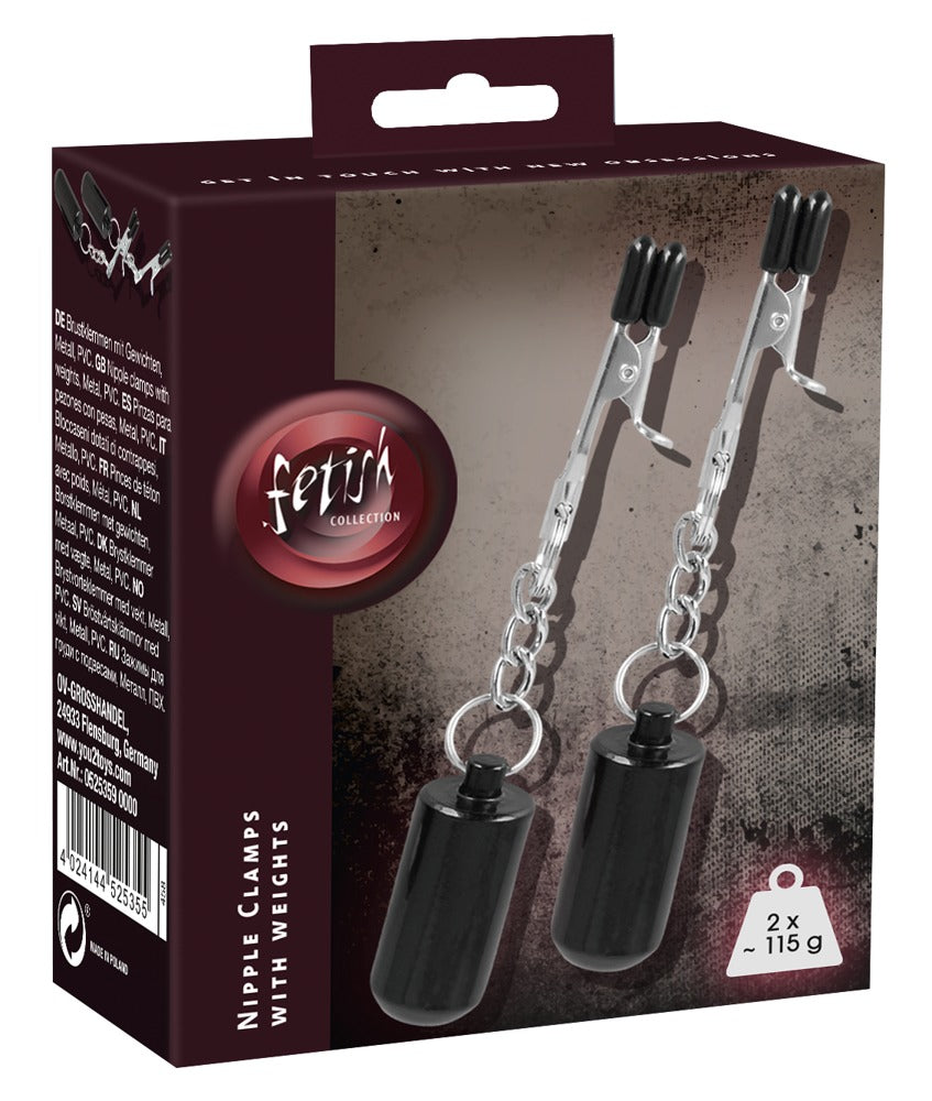 ?Als je de normale tepelklemmen inmiddels bent gewend, dan ben je vast toe aan een nieuwe uitdaging. Deze tepelklemmen zijn verzwaard met afneembare gewichtjes. De tepelklemmen zijn zacht en hebben getande klemmen. Over deze klemmen zijn beschermhoesjes geplaatst.
