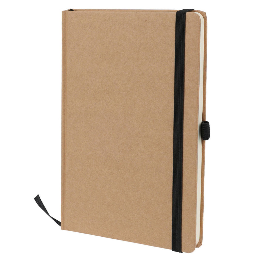 Bruin kraft notitieboek op A5-formaat met 192 pagina's en een elastiek. Papier afkomstig van FSC-gecertificeerde bronnen.