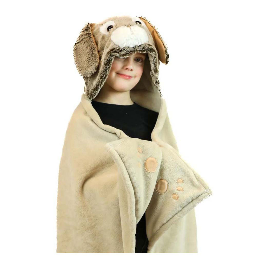 Grote draagbare dierendeken met capuchon. Onze dekens zijn erg zacht, warm, gezellig en leuk om mee te spelen. Geschikt voor alle leeftijden. Dezedekens zijn gemaakt van superzachte fleece materialen en houden je warm en gezellig op de bank, in bed, op het strand, bij het zwembad of buiten. Elke deken heeft hoekzakken om in je handen te steken. Uitstekend geschikt voor rollenspel en om de verbeelding te stimuleren. Handzakken met dierendetails.