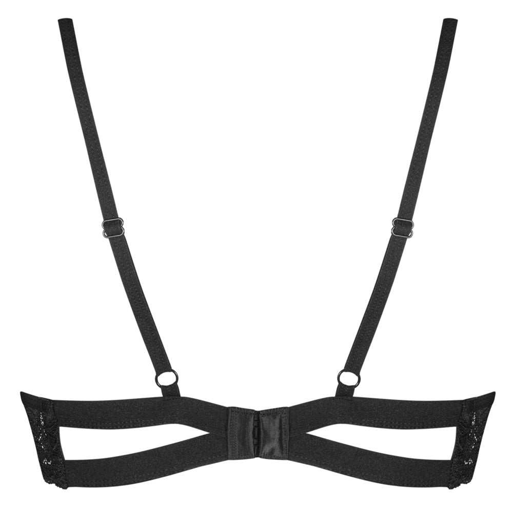 Zwarte Nutris beugelbeha van Obsessive gemaakt van prachtig zacht stretchkant. Met een klein sieraadelement tussen de kanten cups. De haaksluiting op de rug en de bandjes zijn verstelbaar.