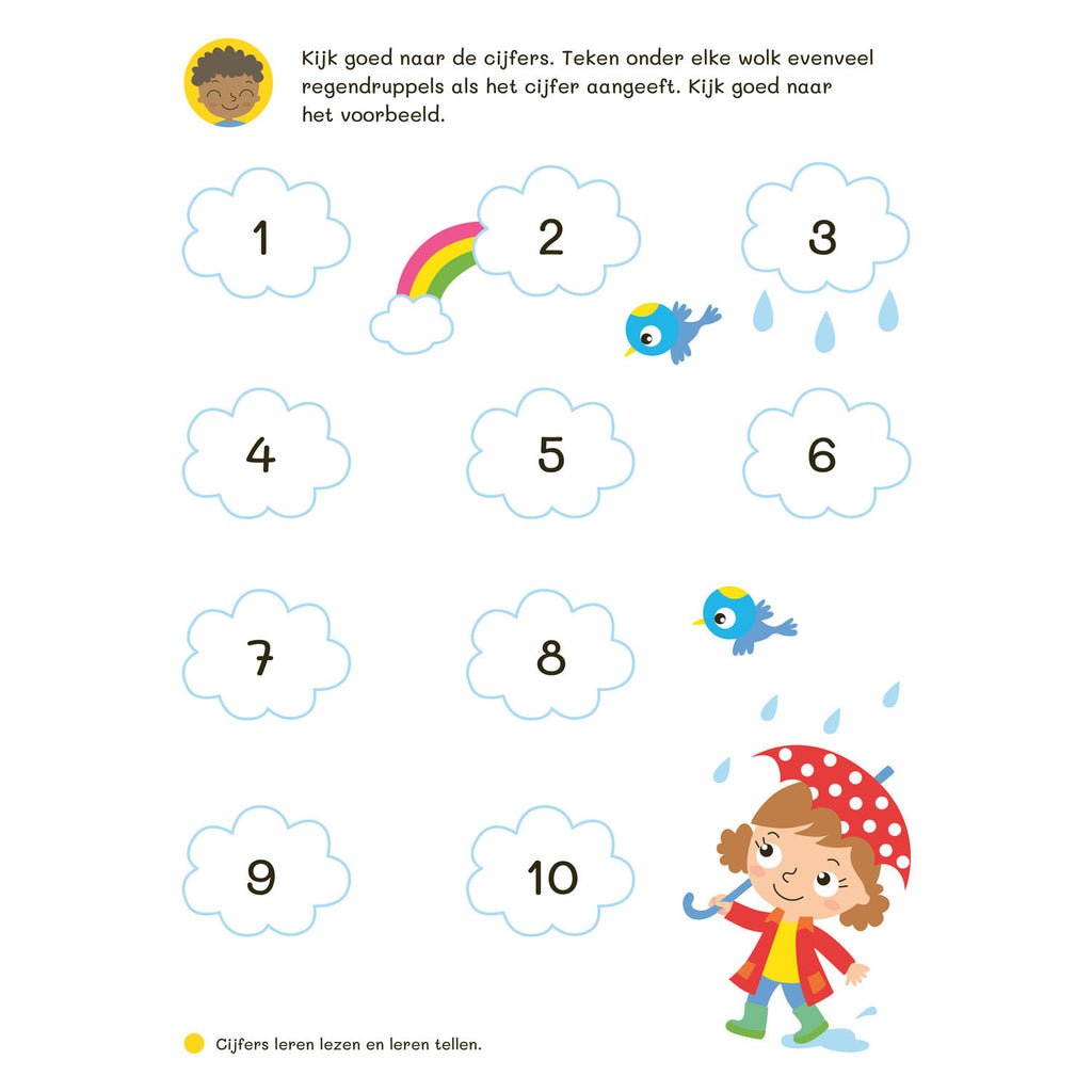 Dit leuke oefenboek op afwasbaar papier is herbruikbaar en dus ideaal voor kinderen die hun eerste stappen naar rekenen zetten. Laat je kind met een stift de oefeningen oplossen, uitwissen en opnieuw beginnen. Eindeloos oefenplezier verzekerd! Voor kinderen van 5 tot 6 jaar die willen leren tellen en rekenenTIP: Gebruik bij voorkeur een uitwisbare stift.