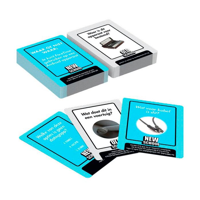 Het quizspel is inclusief 220 kaarten met vier soorten vragen, zodat je het spel steeds opnieuw kunt spelen.