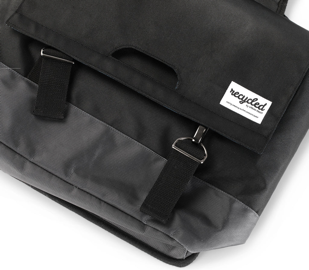 Urban Proof 55L dubbele fietstas is een sterke tas met een verstevigde rug en bodem, gemaakt van gerecycled PET materiaal (RPET). De tas heeft twee ruime opbergvakken met een totale inhoud van 55 liter. Hij is zo gemaakt dat je snel en eenvoudig de tas kan openen en sluiten met de chromen haken. De tas is gemaakt van waterafstotend RPET en heeft aan de binnenkant een waterbestendige voering als extra bescherming voor jouw spullen. Met de daarvoor bestemde riempjes is de dubbele fietstas eenvoudig aan jouw bagagedrager te bevestigen.