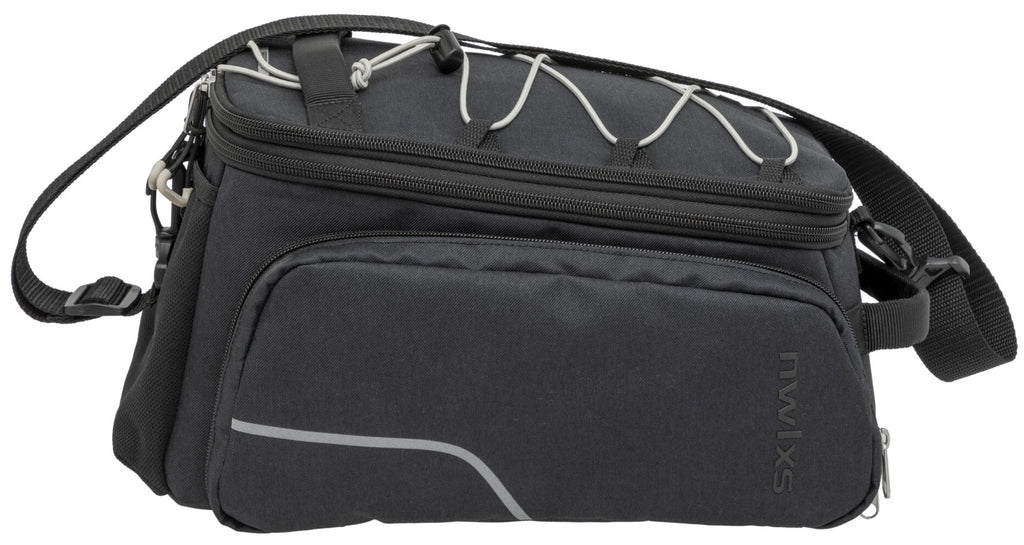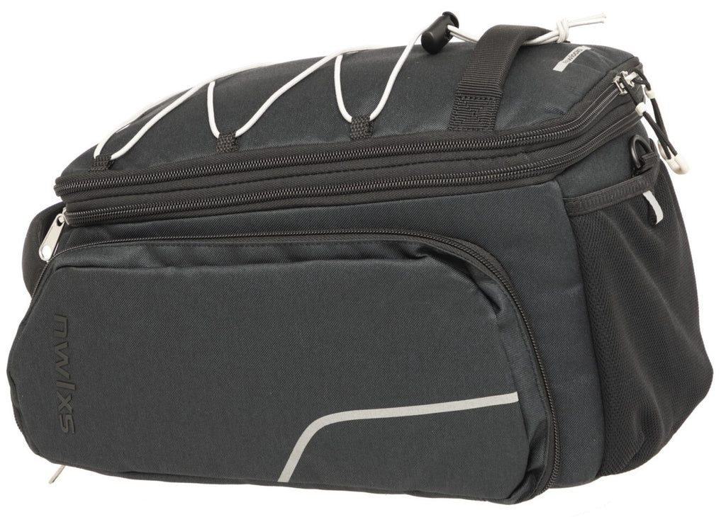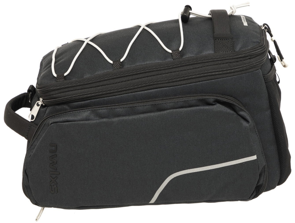 De Sports Trunkbag is ideaal voor een dagje weg. De tas lijkt klein, maar is aan alle kanten te vergroten. Het hoofdvak vergroot je door een rits te openen, daardoor wordt de tas hoger. Binnen in de tas zitten 3 insteekvakken voor kleine spullen. Heb je meer ruimte nodig? Open dan de zijvakken. Zo rol je twee grote extra zijtassen uit zodat je extra veel mee kunt nemen! Achterop kun je een bidon in het speciale netvakje meenemen. De Sports Trunkbag met Racktime Snapit 2.0 adapter past alleen op Racktime 2.0 bagagedragers. Kijk dus even goed of jij deze bagagedrager op jouw fiets hebt! Eigenschappen: Schoudertas inclusief voorgemonteerde Snapit 2.0 Adapter Adapter is geschikt voor Racktime 2.0 bagagedragers Inclusief regenhoes Met 2 uitrolbare zijvakken Hoofdvak is te vergroten 3 binnenvakken Afneembare schouderband Produktspecificaties: Materiaal: Polyester Groep: Fietstas Type: Enkele tas Plaats op fiets: Bagagedrager Waterbestendig: Waterdicht Inhoud: max 31 liter Gewicht: 1,40 kg Afmeting: 34cm x 24cm x 20cm Bevestiging: Racktime SNAPIT 2.0 adapter Kleur: zwart/grijs